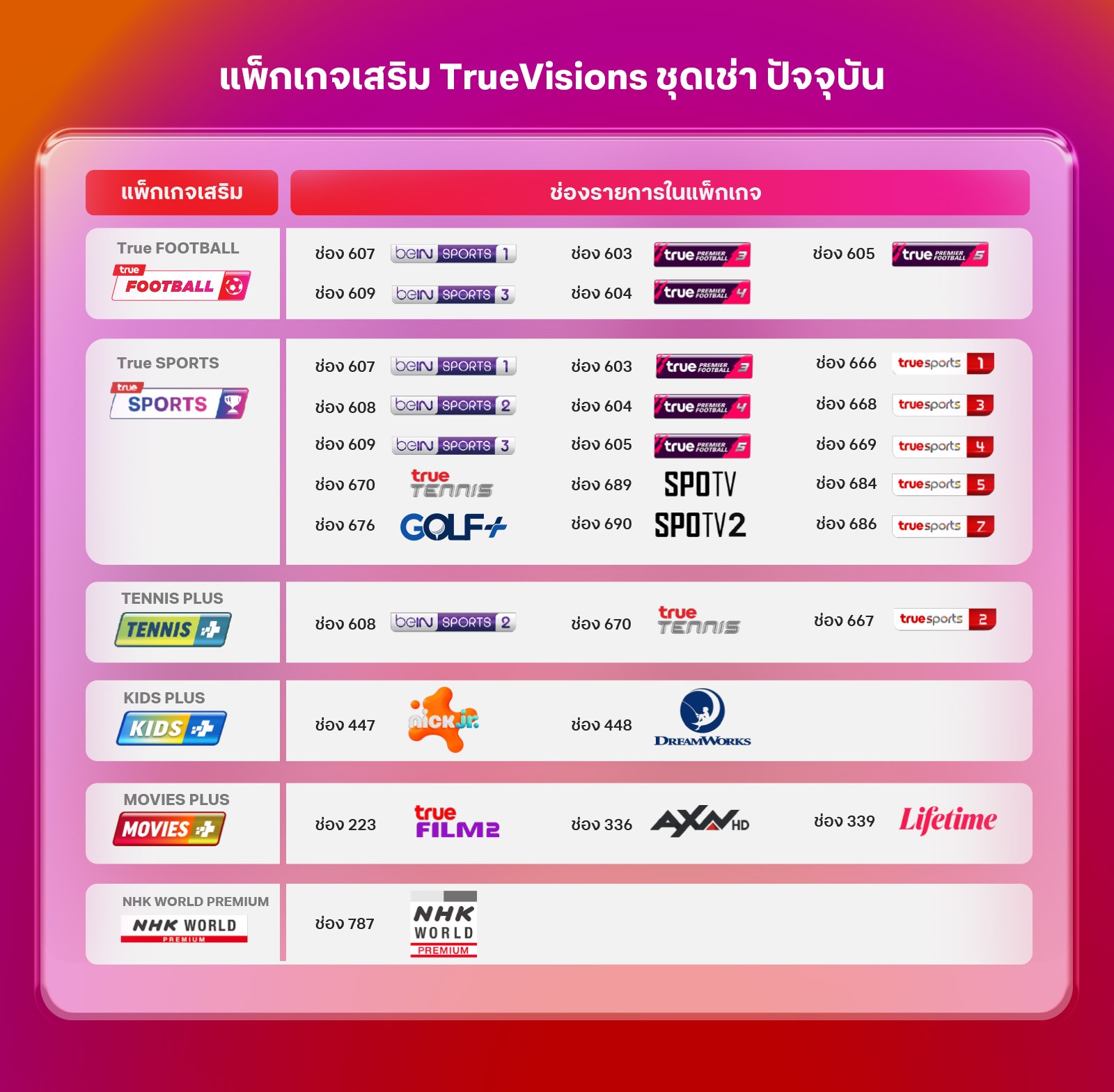 เปรียบเทียบระหว่างแพ็กเดิมกับบน TrueVisions NOW
