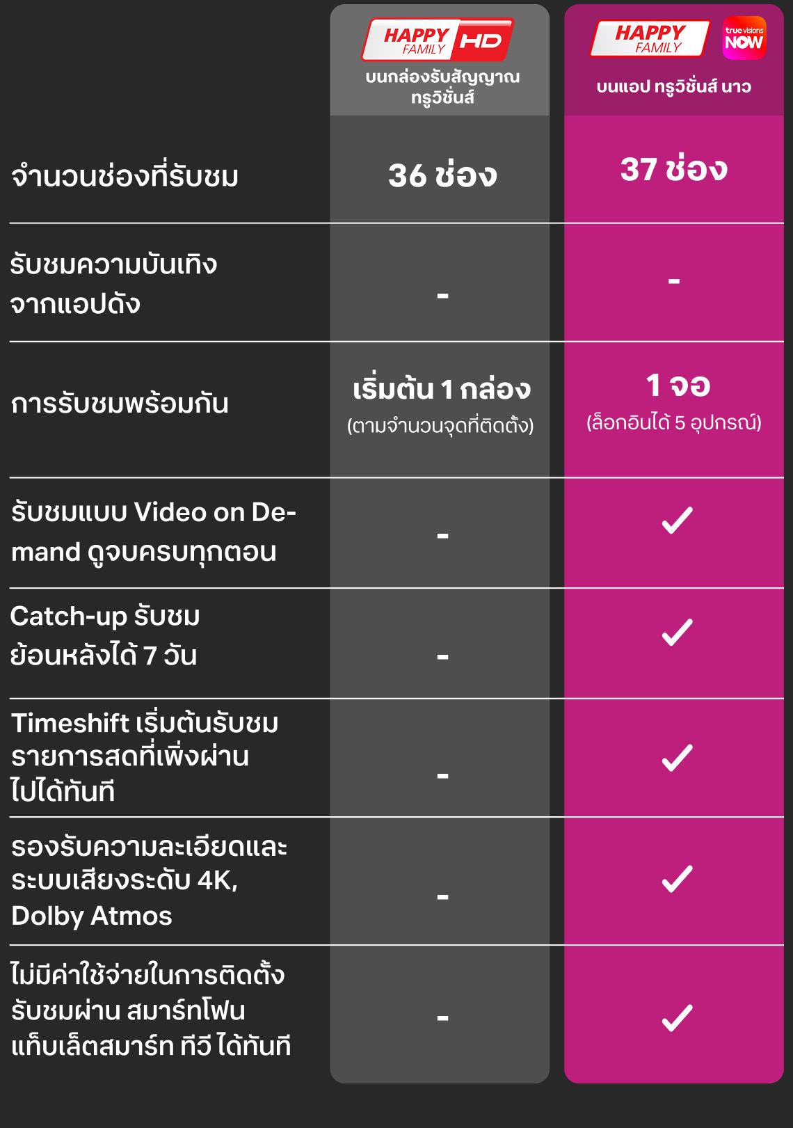 เปรียบเทียบระหว่างแพ็กเดิมกับบน TrueVisions NOW