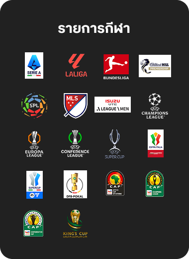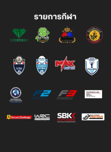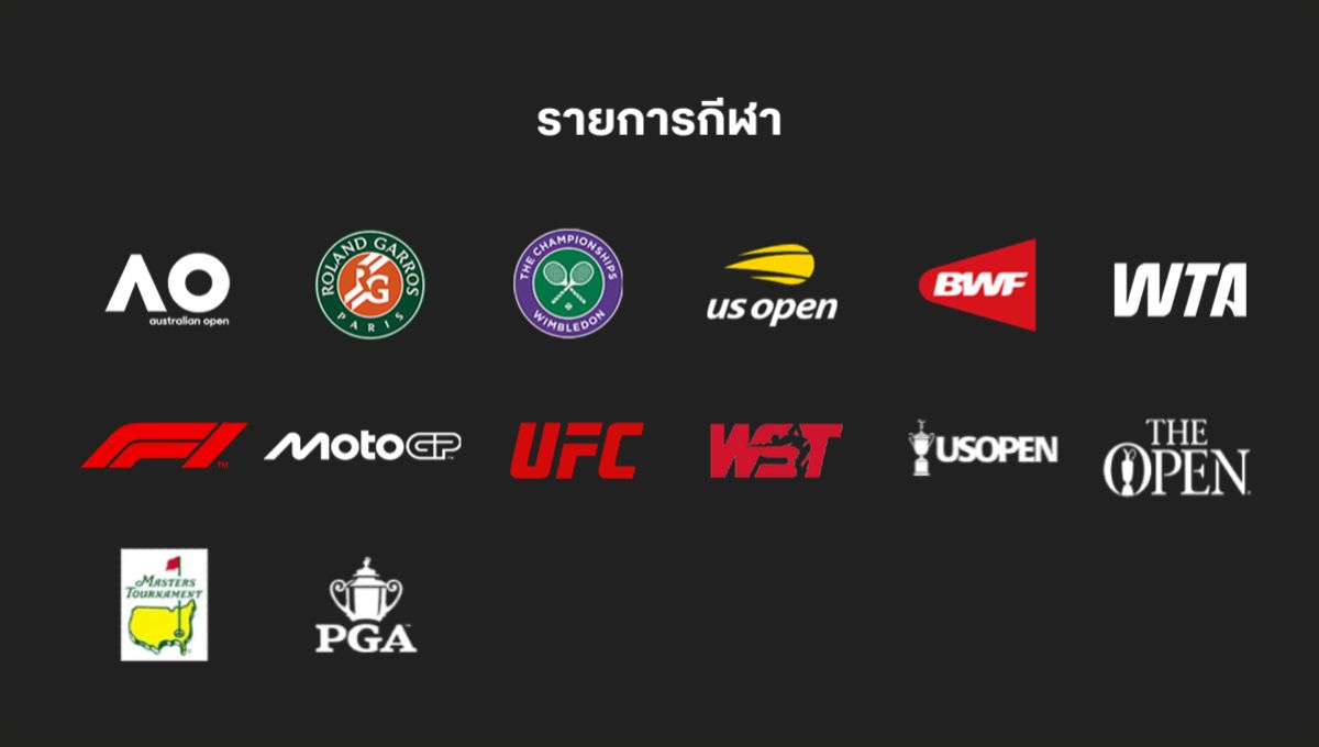 ฟุตบอล ทั้งไทย และต่างประเทศ,วอลเล่ย์บอล, แบดมินตัน, กอลฟ์, เทนนิส, F1, Motor GP, WRC, มวย และกีฬาอื่นๆ อีกมากกว่า 11,000 แมตช์