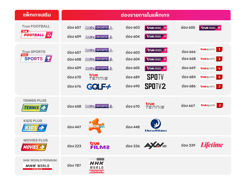 แพ็กเกจเสริม ทรูวิชั่นส์