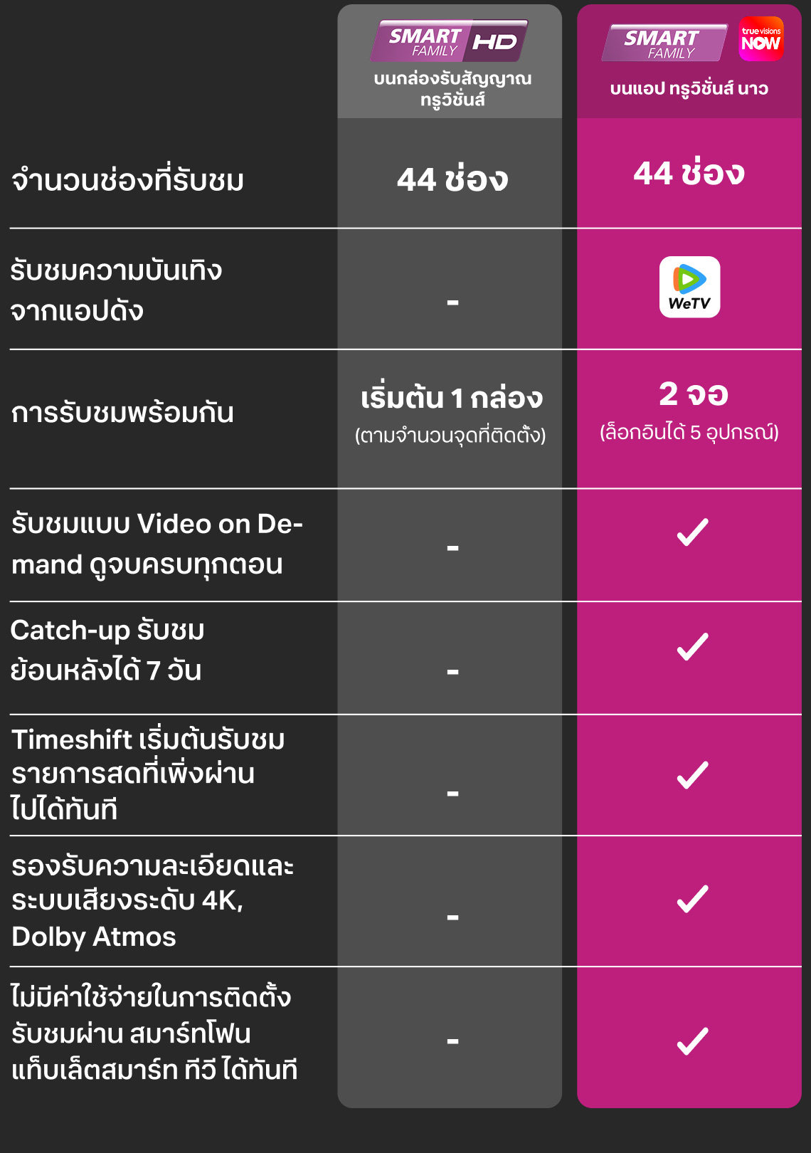 เปรียบเทียบระหว่างแพ็กเดิมกับบน TrueVisions NOW
