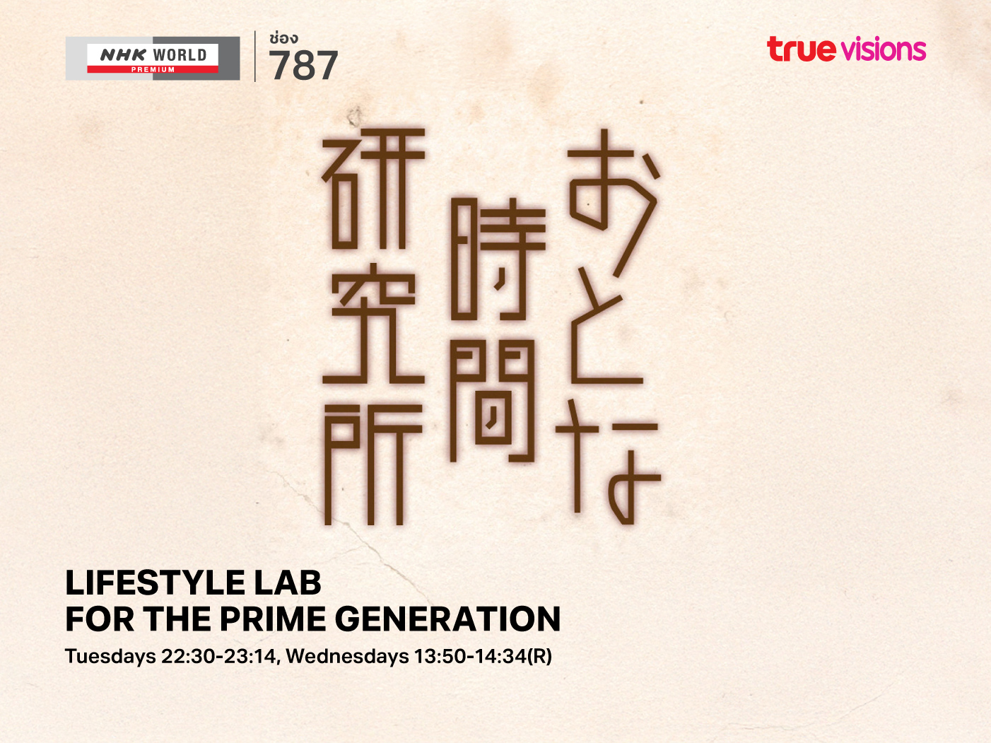 This high-quality educational program, hosted by Tokiwa Takako, is designed for middle-aged and senior viewers with more free time, exploring ways to enjoy a fulfilling adult life through various topics, including food, health, and lifestyle.