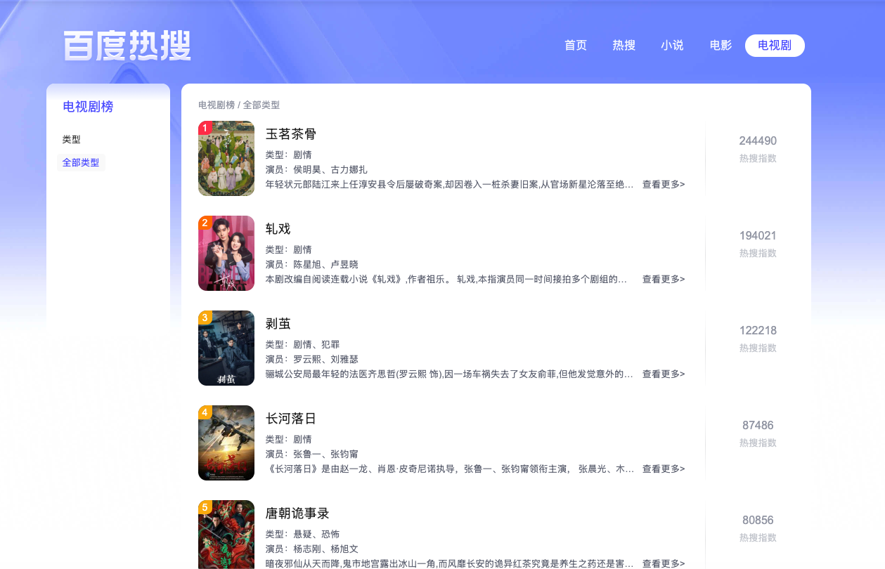 อันดับ Baidu Hot Search ขึ้นชื่อว่าเป็นหนึ่งในเครื่องมือวัดที่โปร่งใสที่สุด สะท้อนถึงระดับความสนใจและการพูดคุยของสาธารณชนต่อชื่อเรื่องละครในช่วงเวลานั้นๆ โดยข้อมูลจะถูกอัปเดตทุกวัน อย่างน้อยวันละครั้ง จึงมักถูกหยิบขึ้นมาเป็นตัวชี้วัดกระแสนิยมอันร้อนแรงในกลุ่มผู้ชมชาวจีน และมีผลต่อการกระตุ้นการรับชมในแพลตฟอร์มที่หลากหลายขึ้น