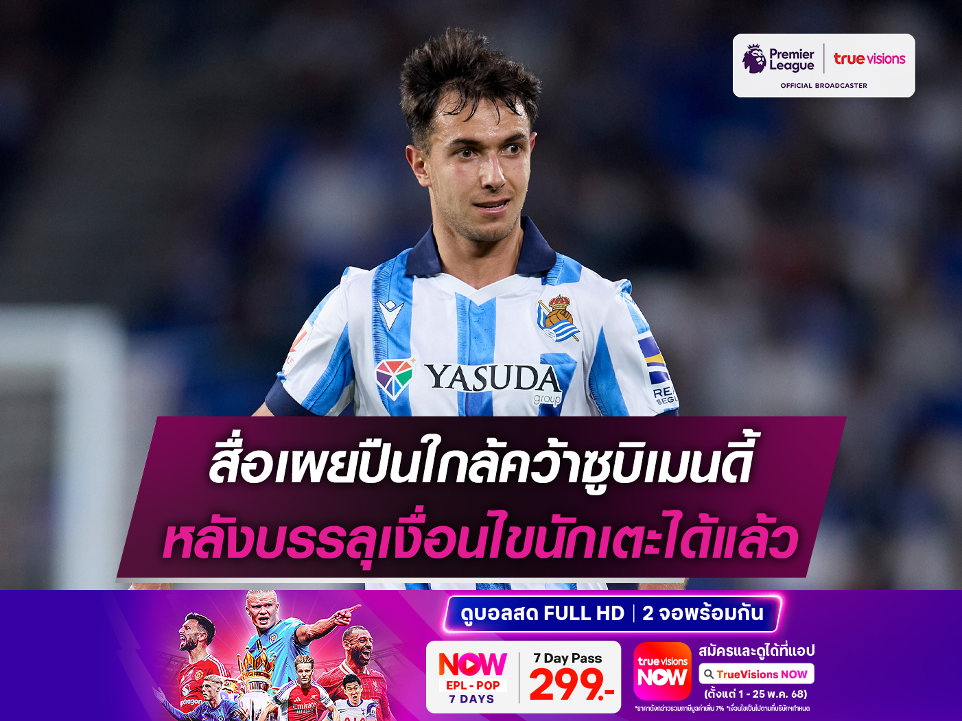 ขณะที่สื่อในสเปนรายงานว่า อาร์เซน่อล พร้อมที่จะจ่ายค่าฉีกสัญญามูลค่า 51 ล้านปอนด์ หรือราว 2,235 ล้านบาท เพื่อคว้าตัวนักเตะมาร่วมทีมในซัมเมอร์นี้ และจะเสนอสัญญายาว 5 ปี หรือจนถึงปี 2030 ให้กับ ซูบิเมนดี้ ในการย้ายมาค้าแข้งในพรีเมียร์ลีก