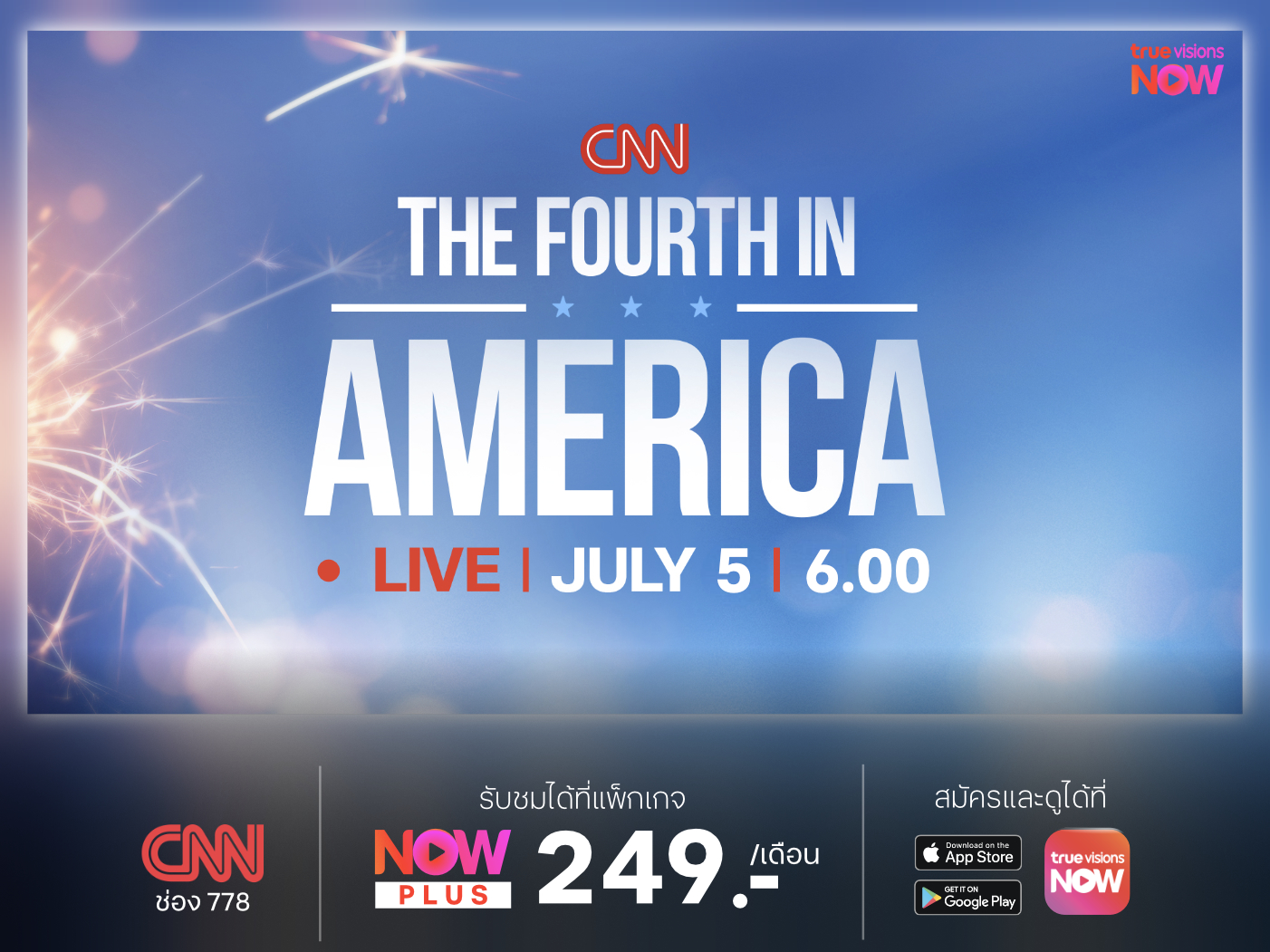 The Fourth in America รายการถ่ายทอดสดบรรยากาศการเฉลิมฉลองวันชาติของสหรัฐอเมริกา กลับมาสร้างสีสันให้ทุกคนได้ดื่มด่ำช่วงเวลาแห่งความภาคภูมิใจกันอีกครั้งในปีนี้ เพื่อเป็นการฉลองในวาระครบรอบ 249 ปีแห่งอิสรภาพ