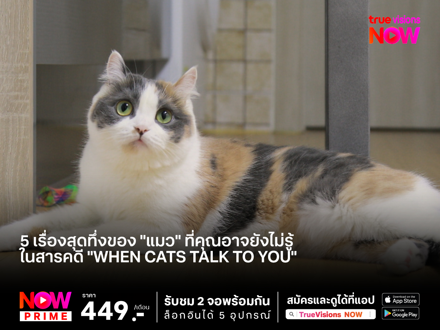 หากพูดถึงสัตว์เลี้ยงยอดฮิตของคนไทยตอนนี้เชื่อว่า "แมว" คงจะต้องติดอันดับแรกๆ ในใจหลายคน เรียกว่าตกกลายเป็นทาสของเจ้าเหมียวหน้าตาน่ารักกันเป็นแถว โดย "When Cats Talk to You" จะพาคุณไปสำรวจเรื่องราวอันน่าทึ่งของการสื่อสารของแมว เจ้าเหมียวตัวโปรดของทุกคน พร้อมเปิดเผยวิธีที่แมวเหล่านี้แสดงออกกับมนุษย์ แต่ก่อนที่จะติดตามไม่พลาดนำเอา 5 เรื่องสุดทึ่งของ "แมว" ที่คุณอาจยังไม่รู้มาให้ได้ติดตามกันก่อน