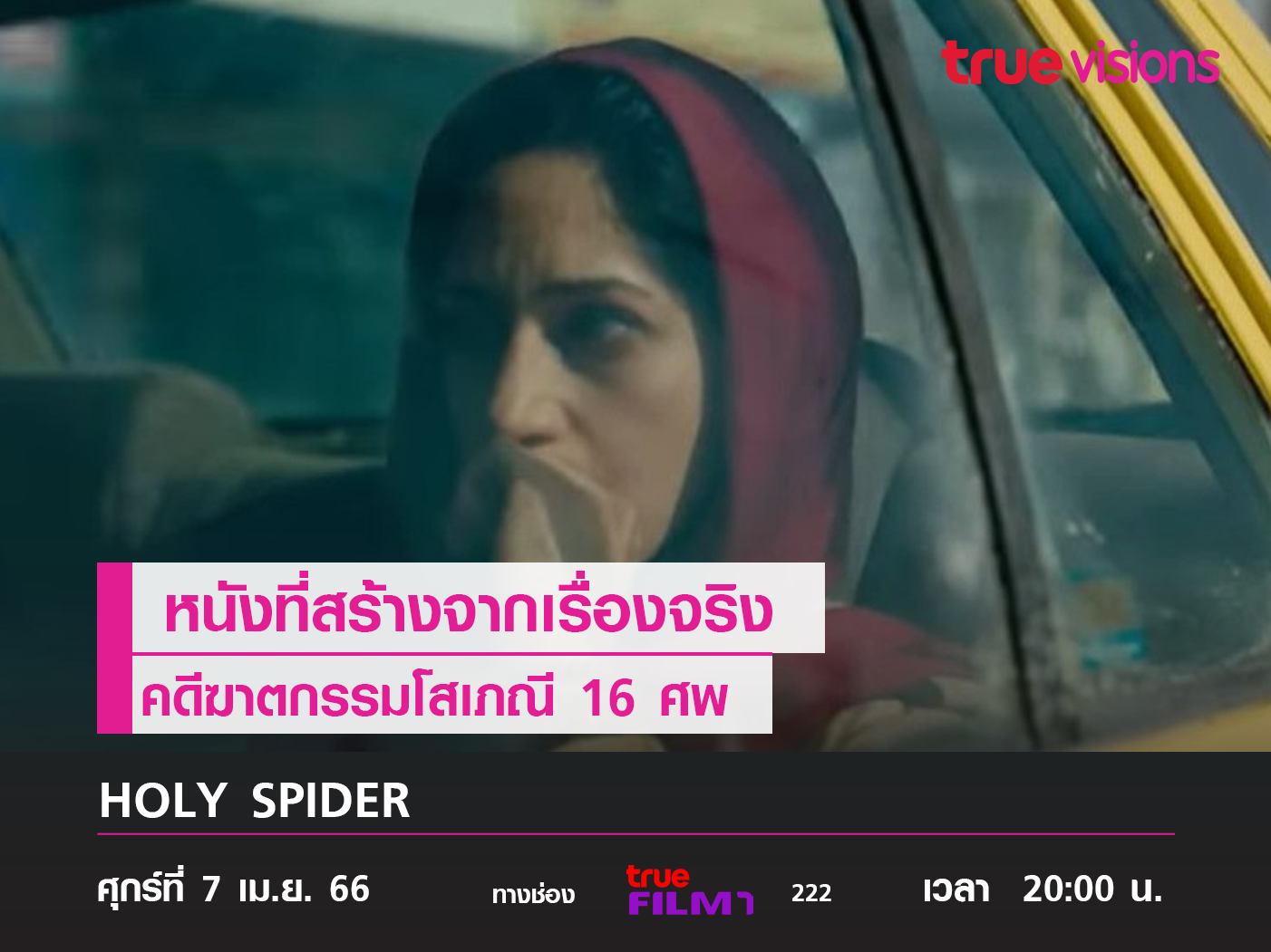 รับชม “HOLY SPIDER” ฆาตกรรมเภณี เมืองศักดิ์สิทธิ์ กันได้ในวันศุกร์ที่ 7 เม.ย. 66 ทางช่อง True Film 1 (222) เวลา 20:00 น.