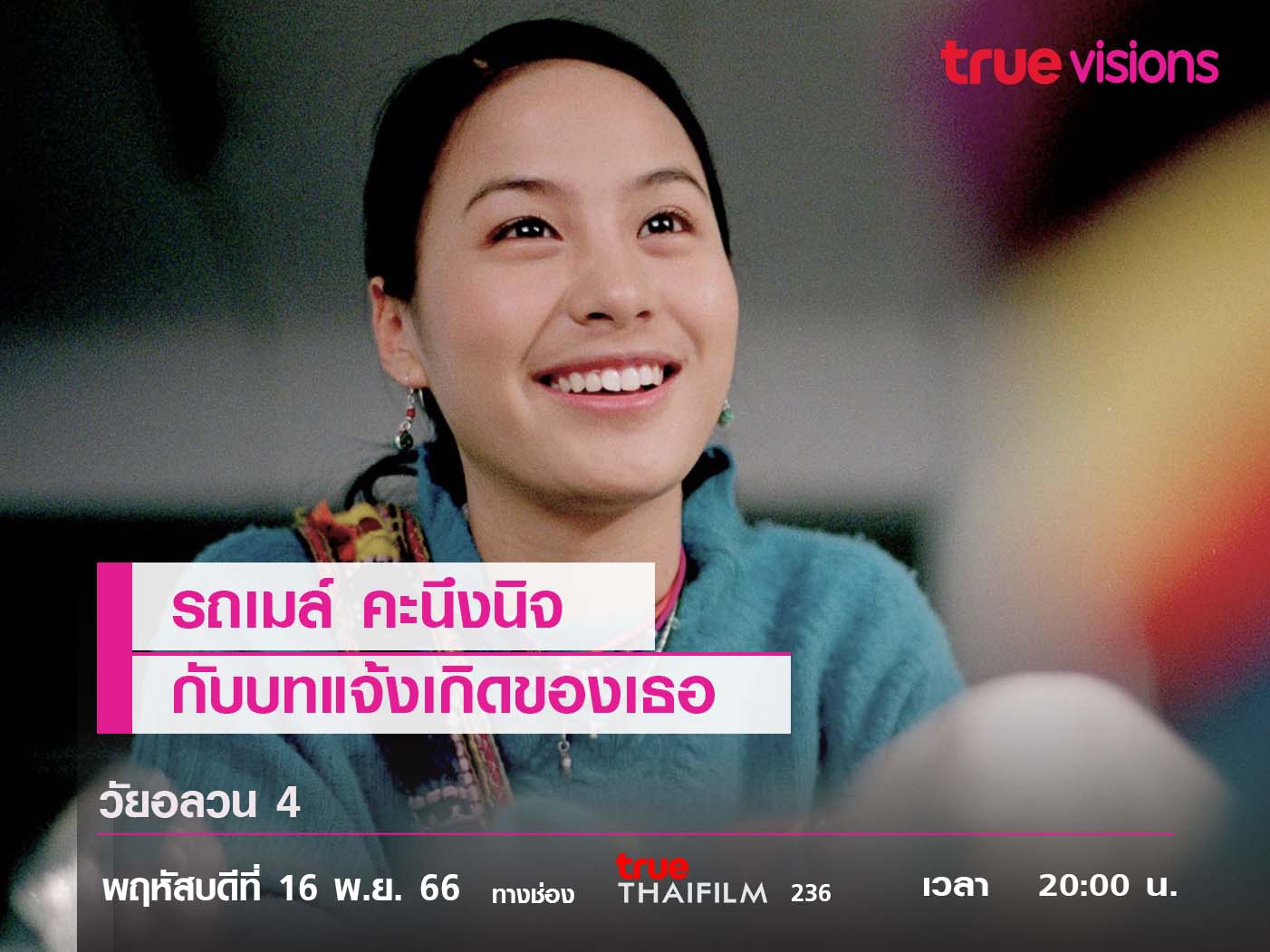ใครคิดถึงความน่ารัก สวยใส และมีสไตล์ของ "รถเมล์" ไปติดตามภาพยนตร์เต็มตัวเรื่องแรกของเธอกันได้ ใน "วัยอลวน 4" พฤหัสบดีที่ 16 พ.ย. 66 ทางช่อง True Thai Film (236) เวลา 20:00 น.
