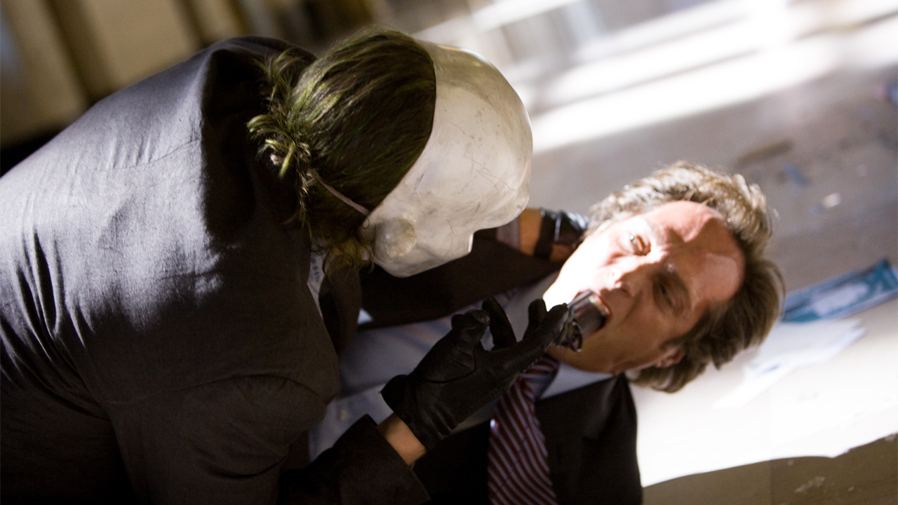 The Dark Knight คือภาพยนตร์ที่ดำเนินเรื่องต่อจากภาค Batman Begins หลังจากแบทแมน (คริสเตียน เบล)ได้ร่วมมือกับร้อยโท เจมส์ กอร์ดอน (แกรี โอลด์แมน) และฮาร์วีย์ เดนท์ (แอรอน เอคฮาร์ท) อัยการหนุ่มในการกวาดล้างแก๊งมาเฟีย แต่แผนการของพวกเขากลับต้องปั่นป่วนหลังการปรากฏตัวของโจ๊กเกอร์ (ฮีธ เลดเจอร์ ผู้ล่วงลับ) จอมวายร้ายที่มีบุคลิกอันแปลกแยกและน่าสะพรึงกลัว