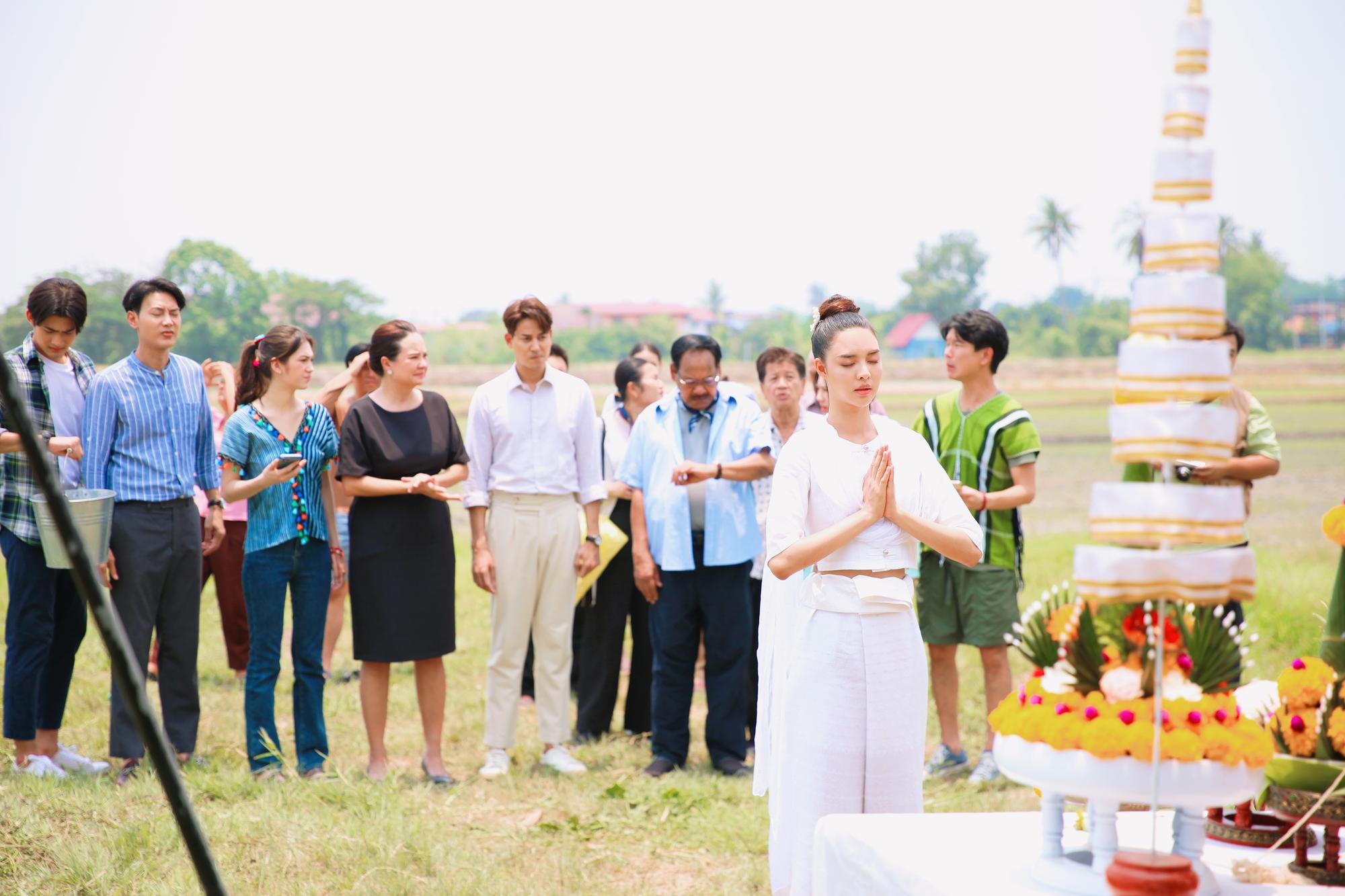 ฉากนี้ยกกองไปปักหลักถ่ายทำกันกลางทุ่งนาของบ้านครูธานี จ.ปทุมธานี โดยเซ็ตโต๊ะหมู่พิธีขึ้นกลางทุ่งนา ท่ามกลางแสงแดดที่ร้อนแรง ต้องบอกว่านักแสดงทุกคนมีสปิริตแรงกล้า สู้ไม่ถอยแม้อยู่กลางทุ่งนา ไม่ว่าผู้กำกับจะให้ทำอะไรก็พร้อมทำเต็มที่ แถมงานนี้ 2 นักแสดง ทอม ธีระพล – ดะ ดนู ทุ่มสุดตัวอาสาขายมุกให้