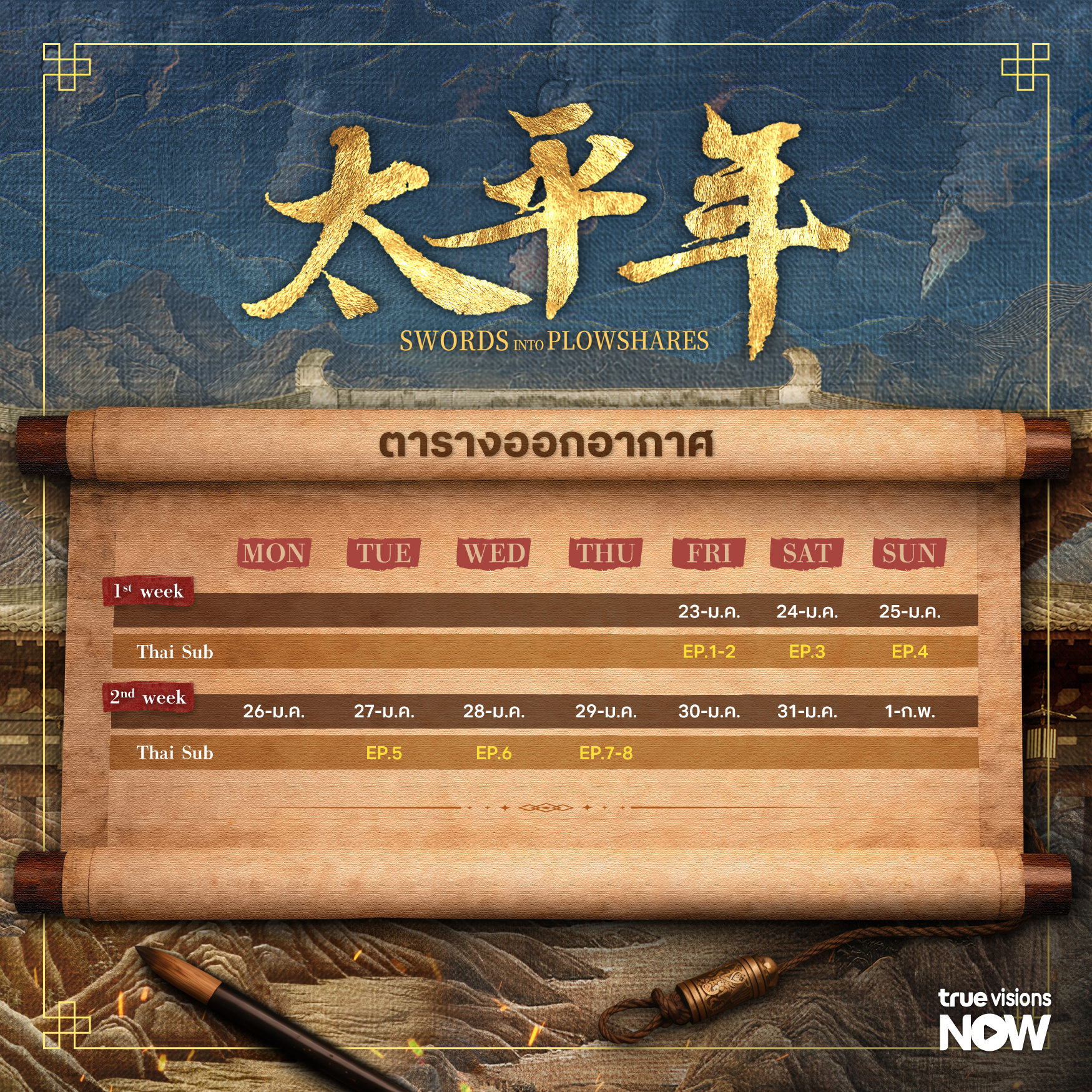 สัมผัสกับความยิ่งใหญ่ของซีรีส์ฟอร์มยักษ์แห่งปี “คมดาบสยบพิภพ” (Swords into Plowshares) เริ่มสตรีม 2 ตอนแรกพร้อมจีน 23 มกราคมนี้ 20.00 น. ที่แอปทรูวิชั่นส์ นาว (เนื่องจากซีรีส์ออกอากาศพร้อมประเทศจีน เพื่อควบคุมคุณภาพให้ดีที่สุด จึงอาจเกิดความล่าช้าในการออกอากาศสำหรับบางตอน)