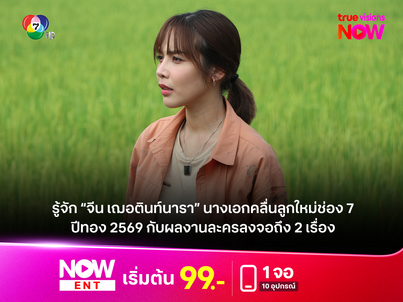 จากดาวมหาวิทยาลัยสู่เส้นทางนางเอกเต็มตัว “จีน เฌอตินท์นารา” กำลังก้าวสู่ช่วงเวลาที่น่าจับตามองที่สุดในชีวิตนักแสดง เมื่อปี 2569 กลายเป็นปีทองที่เธอมีผลงานละครต่อเนื่องหลายเรื่อง ตอกย้ำสถานะนางเอกดาวรุ่งของช่อง 7