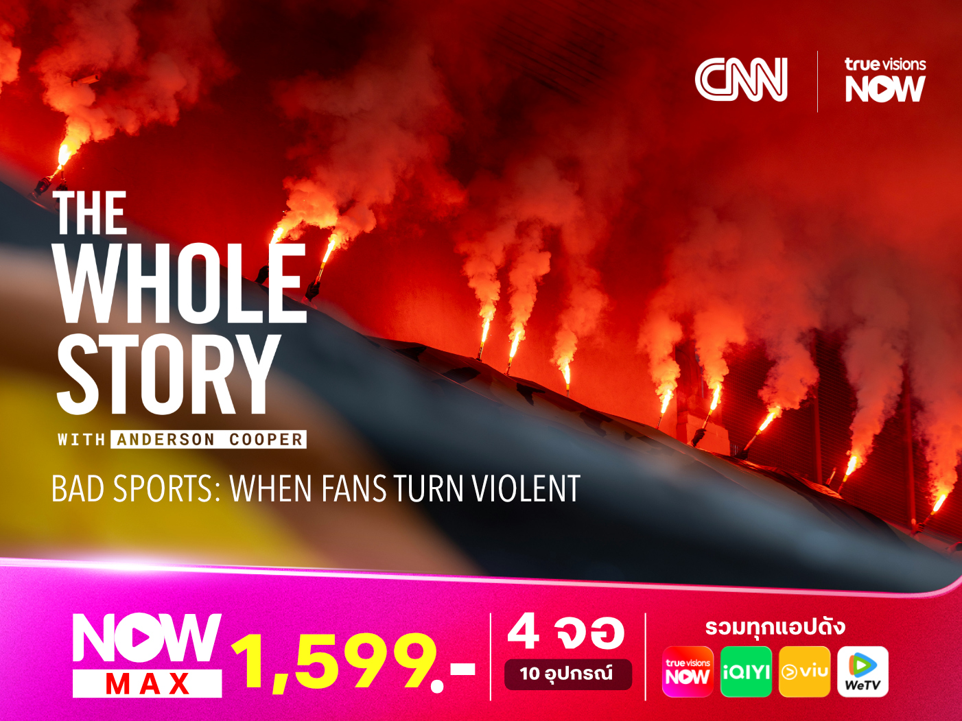 ความตื่นเต้นจากการแข่งขันอันเร้าใจในสนามแข่ง ได้พลิกโฉมกลายเป็นการแสดงออกซึ่งพฤติกรรมยั่วยุและพฤติกรรมรุนแรงนอกสนาม เอ็ด ลาวานเดรา (Ed Lavandera) ผู้สื่อข่าวอาวุโสแห่ง CNN จะพาเราทุกคนไปสำรวจถึงต้นตอ หาสาเหตุที่ทำให้แฟนกีฬาผู้บ้าคลั่งเหล่านี้ขาดสติก่อเหตุให้เรื่องราวบานปลาย กับรายการ “The Whole Story with Anderson Cooper ตอน Bad Sports: When Fans Turn Violent”