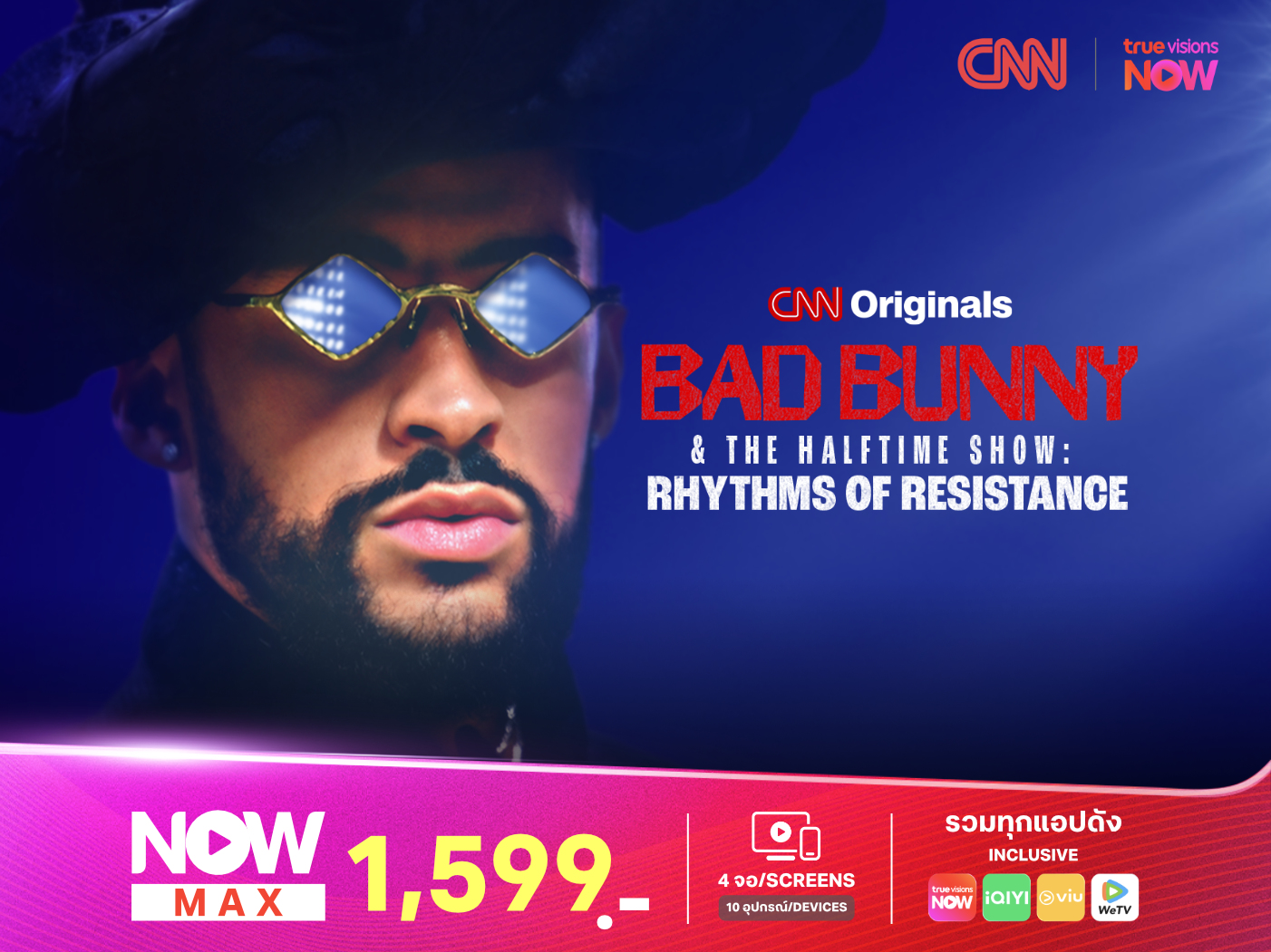 ผ่านรายการพิเศษ “Bad Bunny and the Halftime Show: Rhythms of Resistance” จันทร์ที่ 9 กุมภาพันธ์ 6.00 น. ช่อง CNN (778) และที่แอปทรูวิชั่นส์ นาว