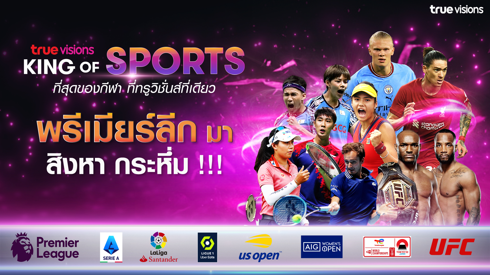 ทรูวิชั่นส์ ยังคงตอกย้ำการเป็นผู้นำคอนเทนต์กีฬาระดับโลกมาตลอด ด้วยอภิมหาโปรแกรมใหญ่ในเดือนสิงหาคม ประเดิมเปิดฤดูกาลใหม่ ฟุตบอลพรีเมียร์ลีก 2022/23 ที่จะถ่ายทอดสดการแย่งแชมป์ลีกที่ดีที่สุดในโลก ครบทั้ง 380 นัด ร่วมด้วยศึก ลาลีก้า, กัลโช่ เซเรีย อา และ ลีก เอิง ที่จะคิ๊กออฟฤดูกาลใหม่เช่นกัน เติมเต็มด้วย เทนนิส แกรนด์ สแลมสุดท้ายของปี ยูเอส โอเพ่น ,แบดมินตัน เวิลด์ แชมเปี้ยนชิพ ประเภทบุคคล ,กอล์ฟ เมเจอร์ฝ่ายหญิง วีเมนส์ โอเพน, ฟอร์มูล่า วัน ครึ่งฤดูกาลหลัง และ ยูเอฟซี มัน ๆ ตลอดทั้งเดือน