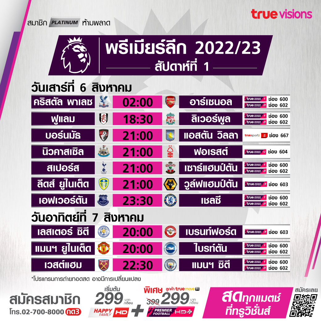 สิงหาคม มาพร้อมกับสุดยอดคอนเทนต์ที่แฟนๆรอคอย นำโดย พรีเมียร์ลีก ลีกสูงสุดของอังกฤษ ฤดูกาล 2022/23 ซึ่งจะเป็นการฉลองครบรอบ 30 ปีที่ก่อตั้งพรีเมียร์ลีกขึ้นมาแทน ดิวิชั่น 1 ทรูวิชั่นส์ โดยช่องทรู พรีเมียร์ฟุตบอล จะถ่ายทอดสดให้แฟนๆ ได้ชมจุใจครบทั้ง 380 นัดตลอดทั้งฤดูกาล จนจบในเดือนพฤษภาคม 2023 โดยจะเปิดฤดูกาลตั้งแต่ 6 สิงหาคมเป็นต้นไป ฤดูกาลล่าสุด แมนเชสเตอร์ ซิตี้ เปิดศึกแย่งแชมป์กับคู่ปรับสำคัญ ลิเวอร์พูลอย่างสนุกสูสี จนไปตัดสินในนัดสุดท้าย ก่อนที่ แมนเชสเตอร์ ซิตี้ จะเป็นฝ่ายคว้าแชมป์ไปครอง ฤดูกาลนี้ คู่เอกยังเป็นคู่เดิม กุนซือทั้ง 2 ทีมคือ เป๊ป กวาร์ดิโอล่า และ เจอร์เก้น คล็อปป์ ทุ่มทุนเสริมทีมให้แข็งแกร่ง เพื่อ ตำแหน่งแชมป์ ส่วนคู่แข่งอย่าง แมนเชสเตอร์ ยูไนเต็ด ,เชลซี ,ท็อตแน่ม ฮ็อทสเปอร์ รวมไปถึง อาร์เซนอล ก็พร้อมสุดๆไม่แพ้กัน ส่วนทีมน้องใหม่ที่เลื่อนชั้นมาในฤดูกาลนี้คือ ฟูแล่ม, บอร์นมัธ และ น็อตทิงแฮม ฟอเรสต์