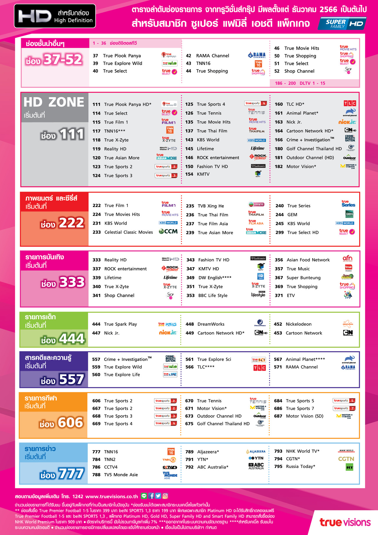 • แพ็กเกจเริ่มต้นความสุขของครอบครัว รวมรายการดังทั้งไทยและเทศ แพ็กเกจเริ่มต้นความบันเทิง รวมรายการคุณภาพจากทรูวิชั่นส์ ดูได้ทั้งครอบครัว