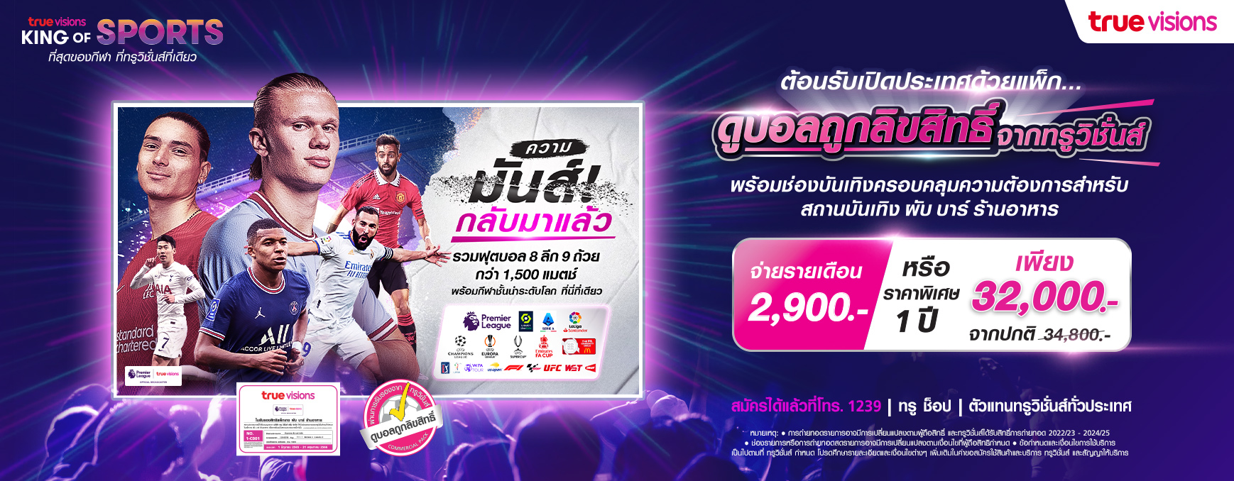 เพื่อรับชมในรูปแบบเชิงพาณิชย์ ชมทรูพรีเมียร์ลีก สดทุกแมตช์มันส์ พร้อมช่องบันเทิงดังระดับโลก