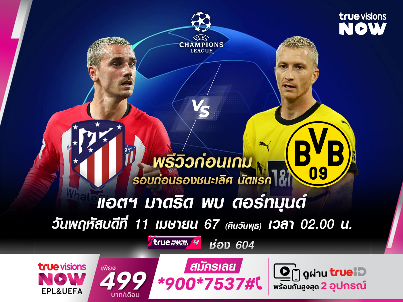 ศึกยูฟ่า แชมเปี้ยนส์ ลีก รอบก่อนรองชนะเลิศนัดแรก แอตเลติโก มาดริด จากสเปน จะเล่นที่ เอสตาดิโอ เมโตรโปลิตาโน่ รับการมาเยือนของ โบรุสเซีย ดอร์ทมุนด์ จากเยอรมนี โดยเกมนี้ แอต. มาดริด เจ้าถิ่น กำลังอยู่ในฟอร์มการเล่นที่ไม่ค่อยมีความแน่นอน หลังแพ้ไปถึง 6 เกมจาก 12 นัดหลังสุดในทุกรายการ แต่จุดเด่นคือเกมในบ้านที่แข็งแกร่ง ขณะที่ ดอร์ทมุนด์ ถือว่ากำลังอยู่ในฟอร์มที่ดี แพ้แค่ 2 เกมจาก 17 นัดหลังสุด แถมยังชนะไปถึง 9 เกม นั่นทำให้เกมนี้จะมีความสูสีกันเป็นอย่างมาก
