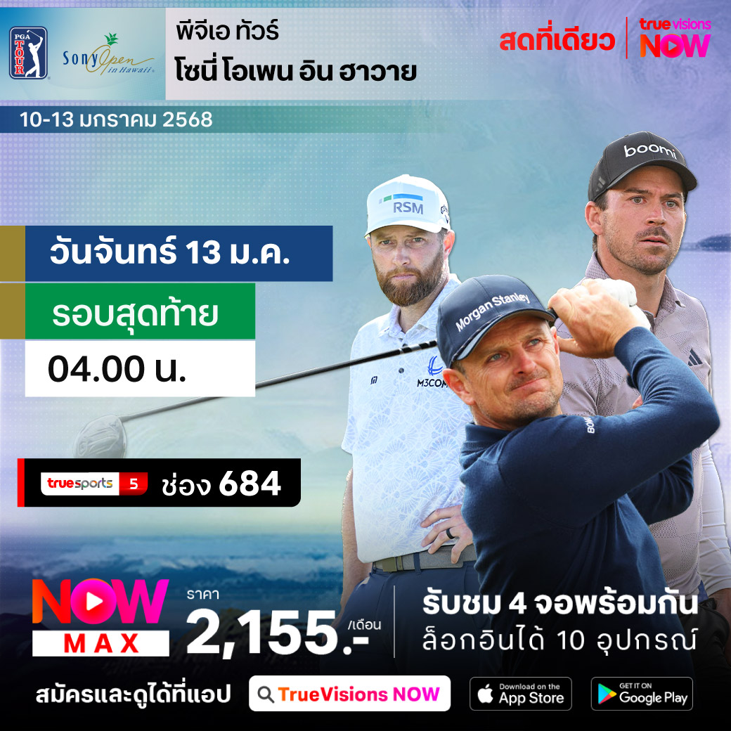 ชมกันต่อเนื่องกับกอล์ฟ พีจีเอ ทัวร์ ฤดูกาลใหม่ 2025 สัปดาห์นี้ยังปักหลักในบรรยากาศสุดชิลที่ฮาวาย กับรายการ โซนี่ โอเพ่น อิน ฮาวาย ที่บรรดาโปรแถวหน้าของทัวร์ตบเท้ามาร่วมแข่งขันกันคับคั่ง ที่สนาม ไวอาเล คันทรี่ คลับ ในโฮโนลูลู ชิงเงินรางวัลรวม 8,700,000 เหรียญสหรัฐฯ ร่วมลุ้นกันว่าใครจะคว้าแชมป์รายการนี้ ชมสด เอ็กซ์คลูซีฟ ครบทุกรอบ ที่เดียวที่ ทรูวิชั่นส์