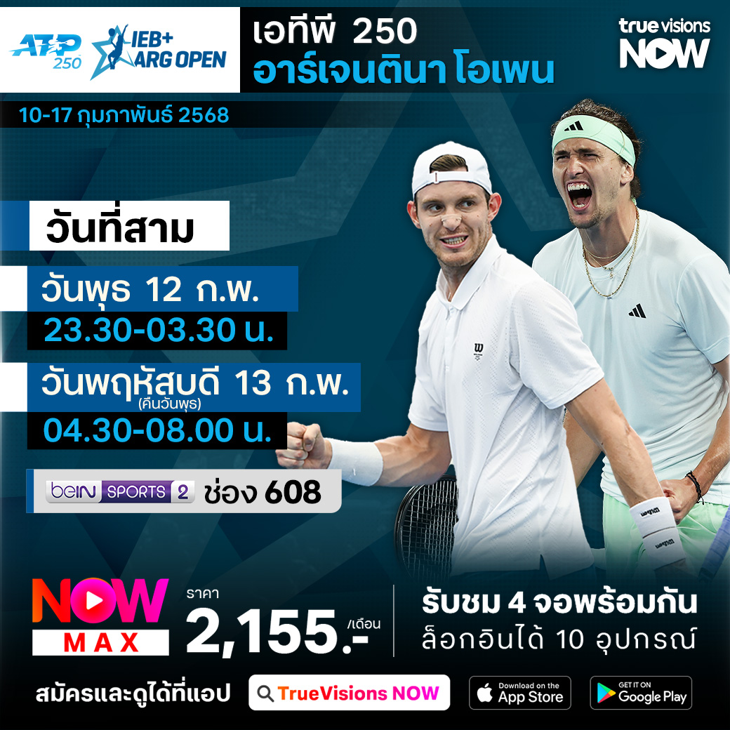 เทนนิสชาย เอทีพี ทัวร์ เข้าสู่ช่วงการแข่งขันโกลเด้น สวิง หรือการแข่งขันในทวีปอเมริกาใต้ สัปดาห์นี้ไปกันที่กรุงบวยโนสไอเรส ประเทศอาร์เจนติน่า กับรายการ อาร์เจนติน่า โอเพ่น โดยนักเทนนิสที่เข้าร่วมการแข่งขันช่วงนี้ต้องปรับตัวจากการแข่งขันบนฮาร์ทคอร์ท มาสู่การแข่งขันบนคอร์ทดิน ร่วมลุ้นกันว่านักเทนนิสคนไหนจะคว้าแชมป์ไปครอง ชมสด ครบทุกรอบ ที่ ทรูวิชั่นส์