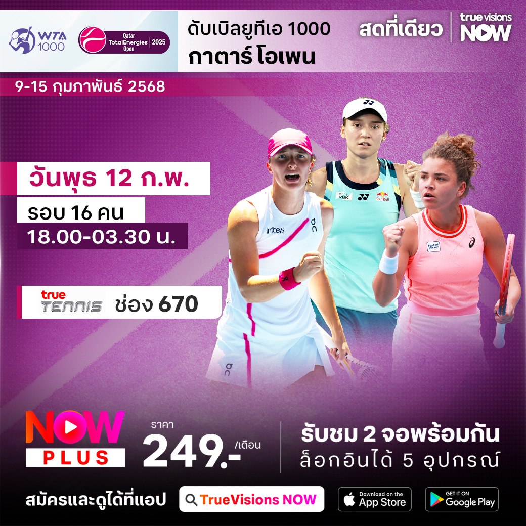 เทนนิสหญิง ดับเบิ้ลยูทีเอ ทัวร์ ช่วงการแข่งขันในภูมิภาคตะวันออกกลาง สัปดาห์นี้พบกับรายการ กาตาร์ โอเพ่น รายการใหญ่ระดับ WTA 1000 หนึ่งในรายการที่สำคัญที่สุดบนตารางการแข่งขันในทุกปี โดยรายการนี้มีนักเทนนิสหญิงชื่อดังระดับโลกเข้าร่วมกันอย่างคับคั่ง ร่วมลุ้นว่าใครจะคว้าแชมป์ไปครอง ชมสด ครบทุกรอบ ที่ ทรูวิชั่นส์