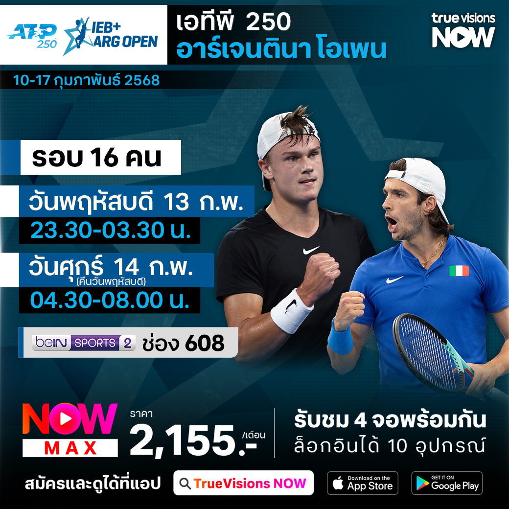 เทนนิสชาย เอทีพี ทัวร์ เข้าสู่ช่วงการแข่งขันโกลเด้น สวิง หรือการแข่งขันในทวีปอเมริกาใต้ สัปดาห์นี้ไปกันที่กรุงบวยโนสไอเรส ประเทศอาร์เจนติน่า กับรายการ อาร์เจนติน่า โอเพ่น โดยนักเทนนิสที่เข้าร่วมการแข่งขันช่วงนี้ต้องปรับตัวจากการแข่งขันบนฮาร์ทคอร์ท มาสู่การแข่งขันบนคอร์ทดิน ร่วมลุ้นกันว่านักเทนนิสคนไหนจะคว้าแชมป์ไปครอง ชมสด ครบทุกรอบ ที่ ทรูวิชั่นส์