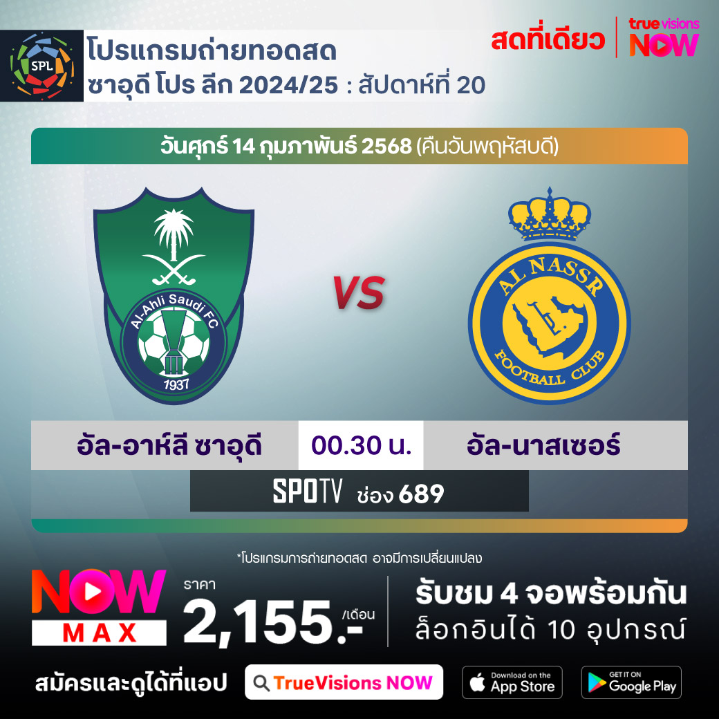 Al-Ahli Saudi vs Al-Nassr เวลา 00.30-02.30 ทางช่อง SPOTV (689)