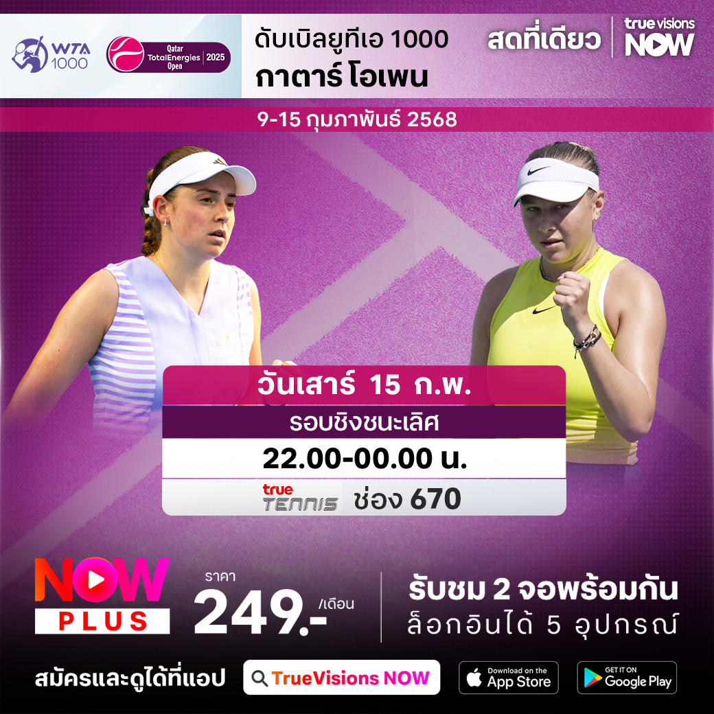 เทนนิสหญิง ดับเบิ้ลยูทีเอ ทัวร์ ช่วงการแข่งขันในภูมิภาคตะวันออกกลาง สัปดาห์นี้พบกับรายการ กาตาร์ โอเพ่น รายการใหญ่ระดับ WTA 1000 หนึ่งในรายการที่สำคัญที่สุดบนตารางการแข่งขันในทุกปี โดยรายการนี้มีนักเทนนิสหญิงชื่อดังระดับโลกเข้าร่วมกันอย่างคับคั่ง ร่วมลุ้นว่าใครจะคว้าแชมป์ไปครอง ชมสด ครบทุกรอบ ที่ ทรูวิชั่นส์