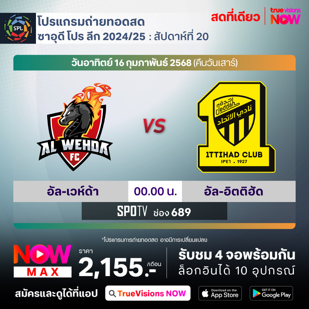 Al-Wehda vs Al-Ittihad เวลา 00.00-02.00 ทางช่อง SPOTV (689)