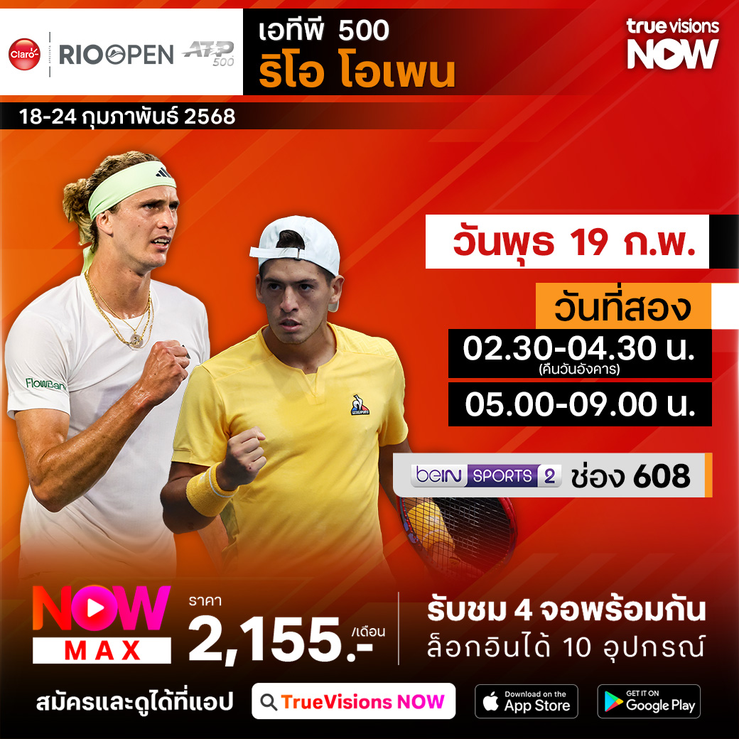 เทนนิสชาย เอทีพี ทัวร์ สัปดาห์นี้พบกับรายการใหญ่ที่สุดในทวีปอเมริกาใต้ และเป็นการแข่งขันบนคอร์ทดิน จากเมือง ริโอ เดจาเนโร ประเทศบราซิล กับรายการ ริโอ โอเพ่น อีกหนึ่งรายการปราบเซียนนักเทนนิสระดับโลก เพราะต้องสู้กับสภาพอากาศร้อนชื้นในบราซิล ร่วมลุ้นกันว่าใครจะคว้าแชมป์ไปครอง ชมสด ครบทุกรอบ ที่ ทรูวิชั่นส์