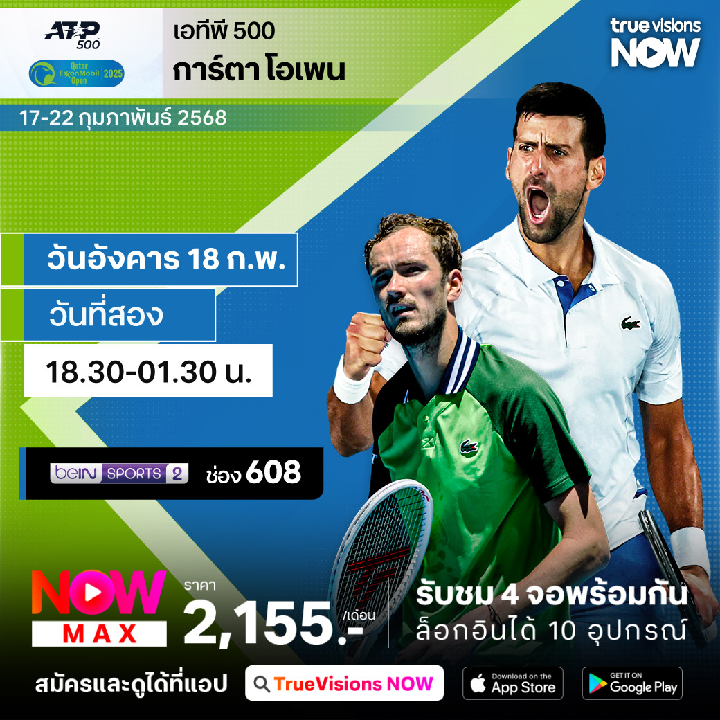 เทนนิสชาย เอทีพี ทัวร์ สัปดาห์นี้พบกับรายการใหญ่ระดับ เอทีพี 500 จากกรุงโดฮา ประเทศกาตาร์ กับรายการ กาตาร์ โอเพ่น สำหรับรายการนี้มีการปรับให้ใหญ่ขึ้นเป็นปีแรก และมีนักเทนนิสระดับโลกเข้าร่วมการแข่งขันกันคับคั่ง ร่วมลุ้นว่าใครจะคว้าแชมป์รายการนี้ไปครอง ชมสด ครบทุกรอบ ที่ ทรูวิชั่นส์