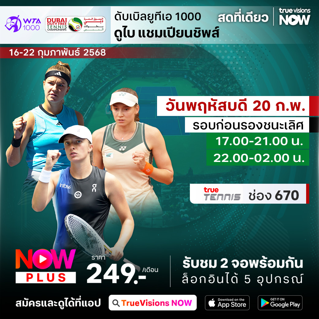 เทนนิสหญิง ดับเบิ้ลยูทีเอ ทัวร์ สัปดาห์นี้เจอกับรายการใหญ่อีกรายการจากภูมิภาคตะวันออกกลาง กับรายการ ดูไบ แชมเปี้ยนชิพส์ ที่เมืองดูไบ ประเทศสหรัฐอาหรับเอมิเรตส์ เป็นอีกหนึ่งรายการที่รวมสุดยอดนักเทนนิสหญิงไว้รวมกันมากที่สุด ร่วมลุ้นกันว่าใครจะคว้าแชมป์รายการนี้ไปครอง ชมสด ครบทุกรอบ ที่ ทรูวิชั่นส์