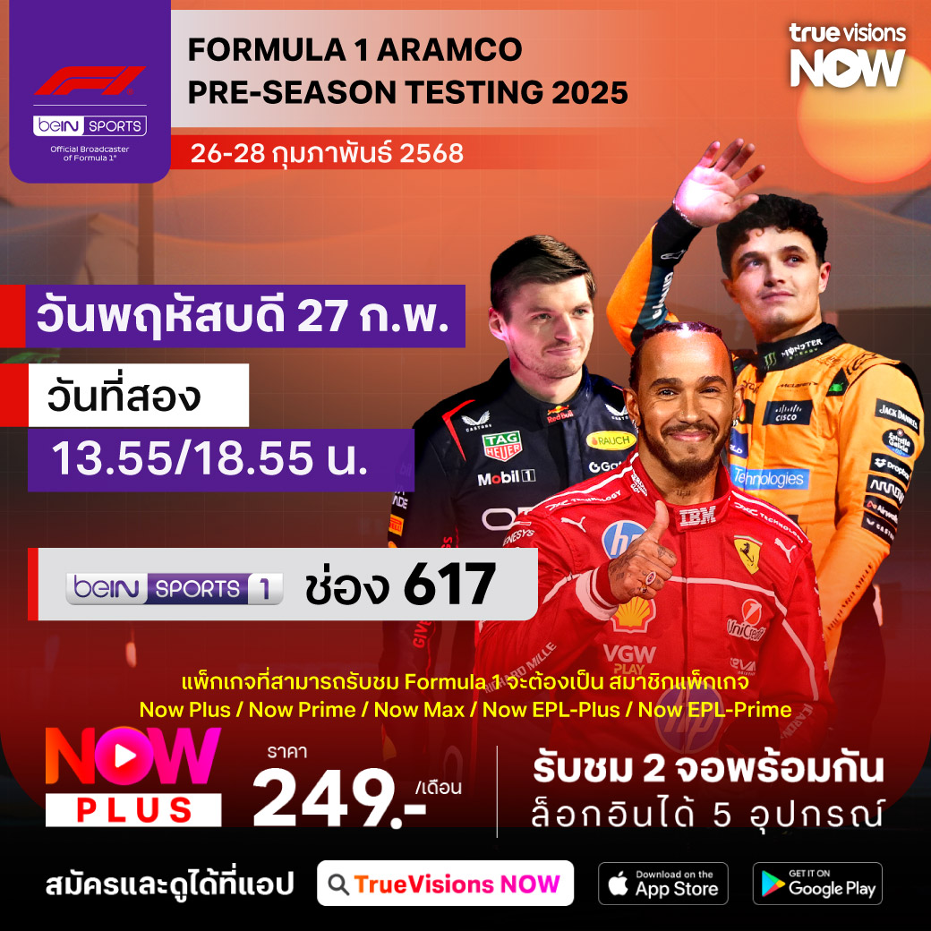 แฟนๆ กีฬาความเร็วพลาดไม่ได้ กับฤดูกาลใหม่ของศึก ฟอร์มูล่า วัน เวิลด์ แชมเปี้ยนชิพ ที่ใกล้จะเปิดฉากขึ้นแล้ว สัปดาห์นี้ เป็นสัปดาห์สำคัญ กับการทดสอบรถ ทดสอบทีม ทดสอบนักแข่ง อย่างเป็นทางการ กับ ฟอร์มูล่าวัน พรี-ซีซั่น เทสต์ติ้ง 2025 จากสนาม บาห์เรน อินเตอร์เนชั่นแนล เซอร์กิต ประเทศบาห์เรน จับตาดูทีมระดับเต็งแชมป์อย่าง แม็คลาเรน, เฟอร์รารี่ และ เรดบูล ชมสด เอ็กซ์คลูซีฟ จุใจ ที่เดียว ที่ ทรูวิชั่นส์