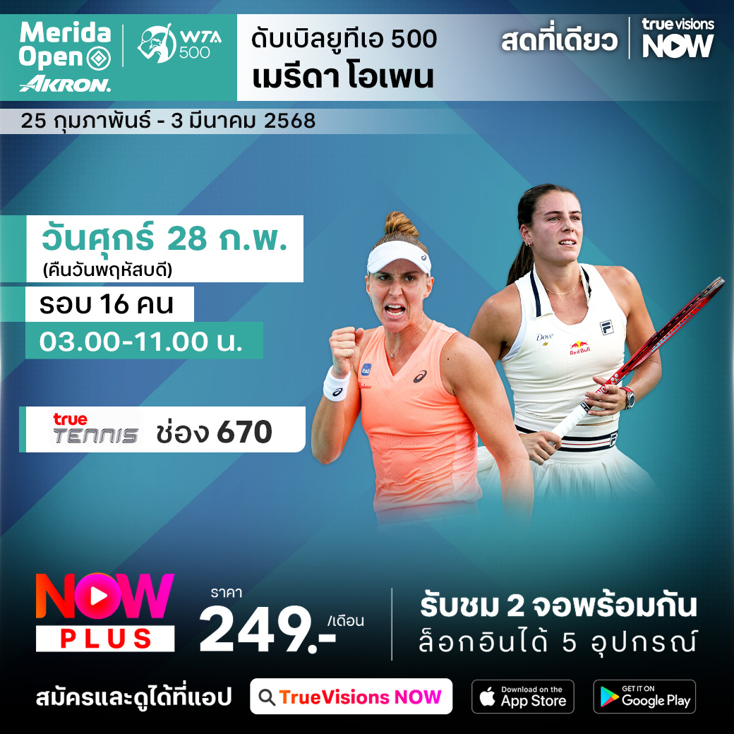 เทนนิสหญิง เอทีพี ทัวร์ สัปดาห์นี้พบกับรายการ เมริด้า โอเพ่น ที่เมืองเมริด้า ประเทศเม็กซิโก รายการที่นักเทนนิสต้องต่อสู้กับสภาพอากาศร้อนชื้นในเมืองเมริด้า และยังเป็นการเตรียมตัวก่อนเข้าสู่ 2 รายการใหญ่ที่จะแข่งขันในเดือนมีนาคม ร่วมลุ้นกันว่าใครจะคว้าแชมป์ไปครอง ชมสด ครบทุกรอบ ที่ ทรูวิชั่นส์