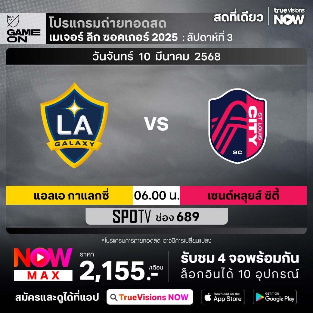 LA Galaxy vs St. Louis เวลา 06.00-08.00 ทางช่อง SPOTV (689)