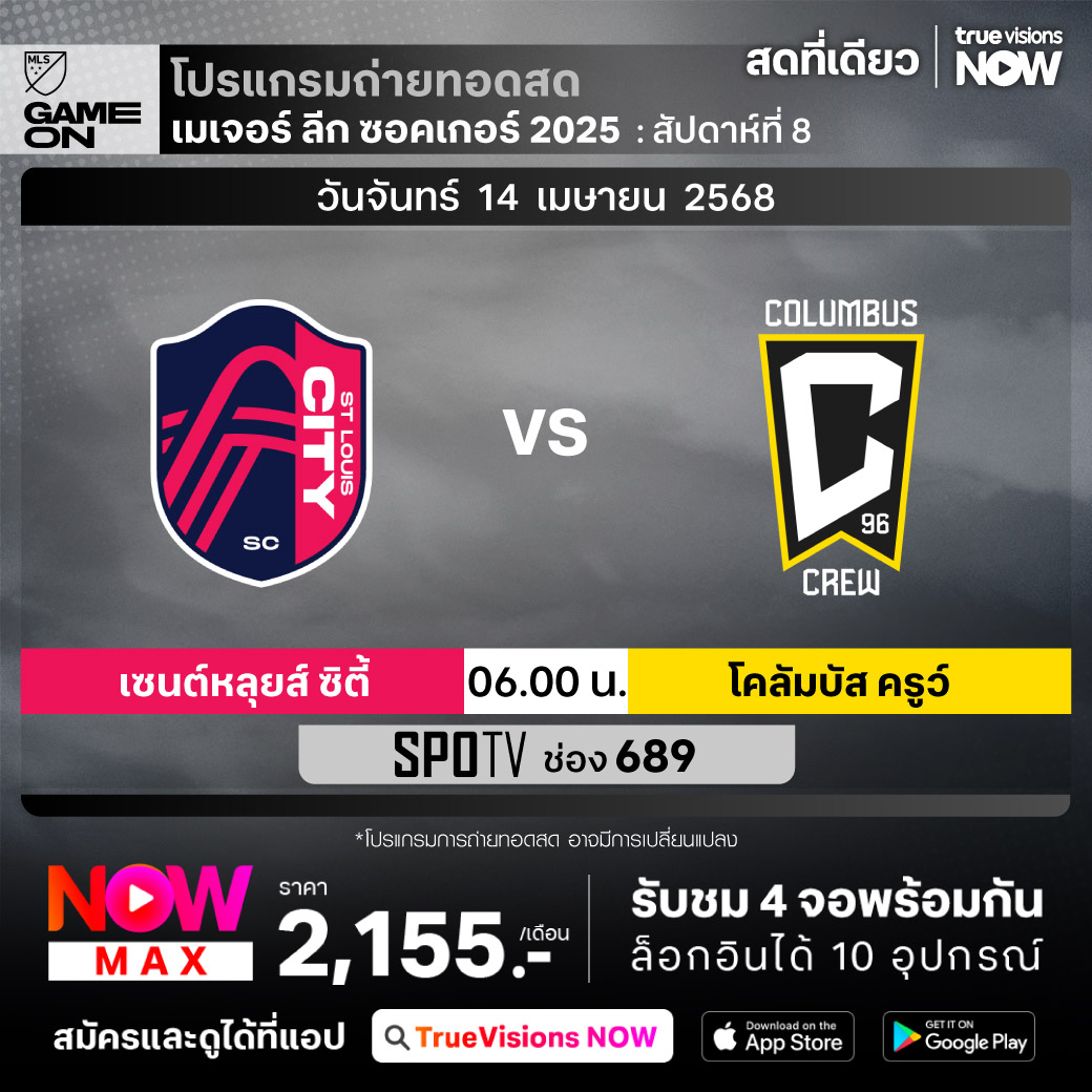 St. Louis vs Columbus Crew เวลา 06.00-08.00 ทางช่อง SPOTV (689)