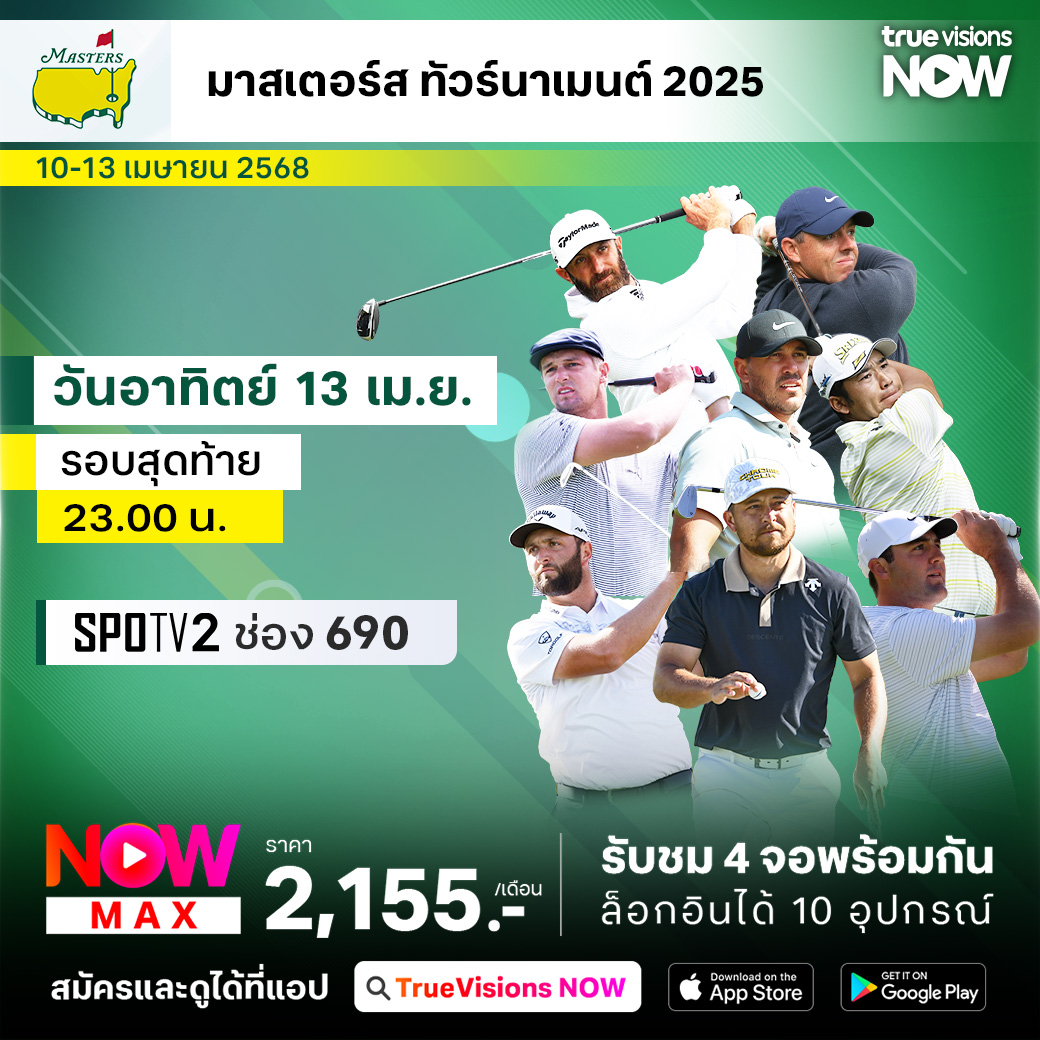 ถนนทุกสายมุ่งหน้าสู่ ออกัสต้า เนชั่นแนล กอล์ฟ คลับ กับกอล์ฟรายการเมเจอร์แรกของปี มาสเตอร์ส ทัวร์นาเมนต์ รายการที่แฟนๆ รอคอยที่จะติดตามชมด้วยความระทึกใจ กับเสน่ห์และมนต์ขลังที่ไม่มีวันเสื่อมคลาย นักกอล์ฟชั้นนำของโลกมากันครบ ทุกช็อตมีความหมาย ทุกคะแนนมีโอกาสลุ้นเป็นเจ้าของกรีนแจ็คเก็ตและโทรฟี่สำหรับแชมเปี้ยน ชมสด เอ็กซ์คลูซีฟ ครบทุกรอบ ที่เดียวที่ ทรูวิชั่นส์