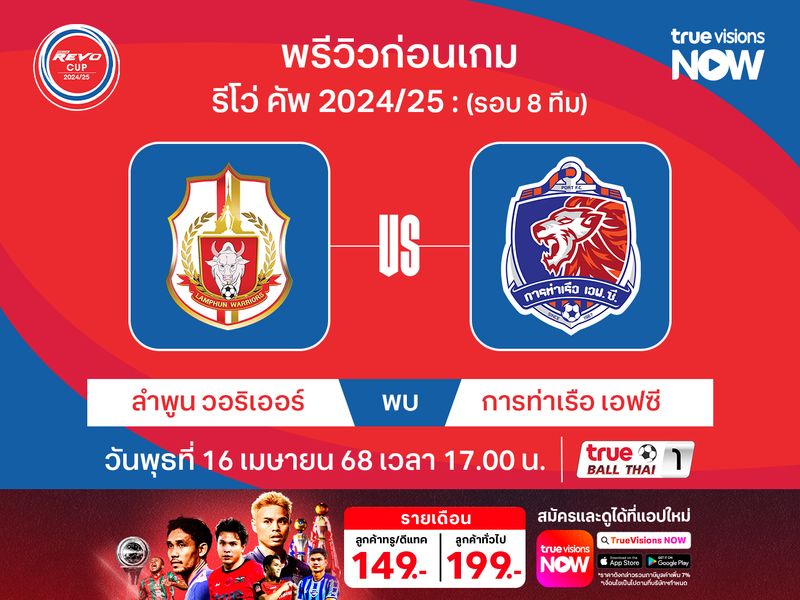 พรีวิวความพร้อมการแข่งขันฟุตบอลรีโว่ คัพ รอบ 8 ทีมสุดท้าย ประจำวันวันพุธ 16 เมษายน 2568 ลำพูน วอริเออร์ เปิดบ้านรับการมาเยือน การท่าเรือ เอฟซี