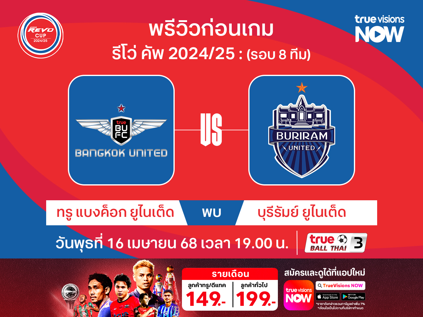 เจ้าถิ่น "แข้งเทพ" ทรู แบงค็อก ยูไนเต็ด ภายใต้การคุมทัพของ "โค้ชแบน" ธชตวัน ศรีปาน เพิ่งจะอกหักตกรอบ 16 ทีมสุดท้ายของศึกช้าง เอฟเอคัพ มาหมาดๆ หลังโดน เมืองทอง ยูไนเต็ด แก้ทางบุกมายัดเยียดความปราชัยถึงถิ่น 1-2 เกมนี้ต้องเน้นเต็มที่ เพื่อโอกาสเข้าไปลุ้นคว้าแชมป์รายการนี้มาครองให้ได้