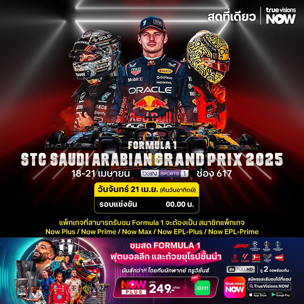 ศึกฟอร์มูล่า วัน เวิลด์ แชมเปี้ยนชิพ สนามที่ 5 ของฤดูกาล ยังคงปักหลักสู้กันอย่างดุเดือด ท่ามกลางความร้อนระอุของแถบตะวันออกกลาง สัปดาห์นี้แฟนๆ ลุ้นชิดติดขอบจอกับ ซาอุดิอาระเบียน กรังด์ปรีซ์ ที่สนาม เจ็ดดาห์ คอร์นิช เซอร์กิต ในประเทศซาอุดิอาระเบีย ติดตามกันว่าทีมยักษ์ใหญ่อย่าง เร้ดบูลล์, แม็คลาเรน, เฟอร์รารี่ และ เมอร์ซีเดส ใครจะได้เฮ ชมสด เอ็กซ์คลูซีฟ ที่เดียวที่ ทรูวิชั่นส์