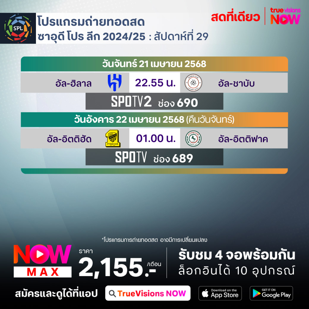 Al-Ittihad vs Al-Ettifaq เวลา 01.00-03.00 ทางช่อง SPOTV (689)