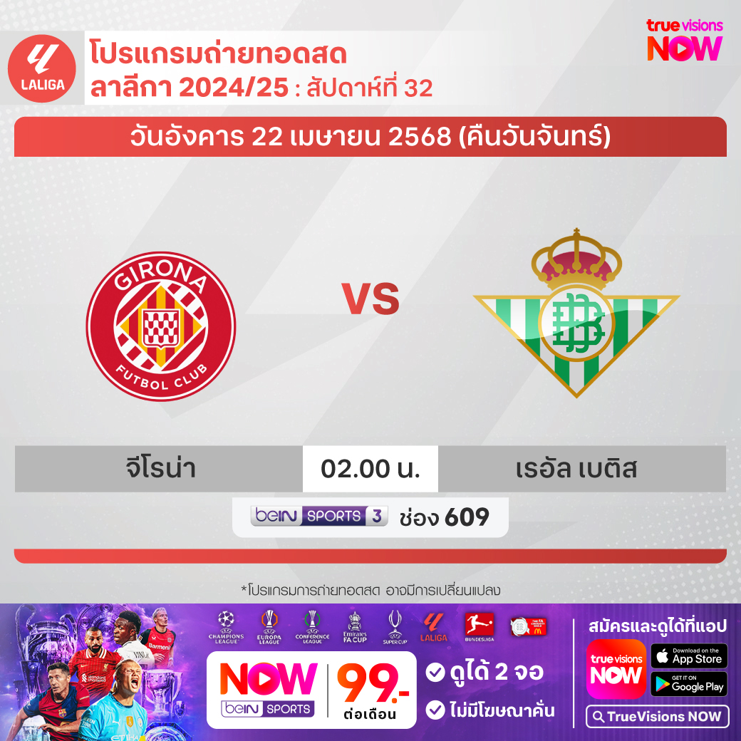 Girona vs Real Betis เวลา 02.00-04.00 ทางช่อง beIN 3 (609)