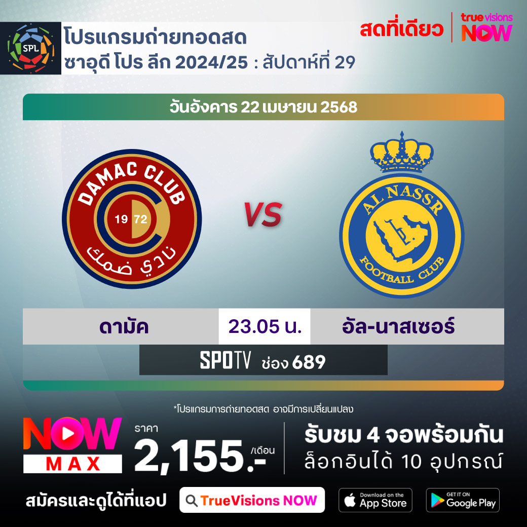 Damac vs Al-Nassr เวลา 23.05-01.05 ทางช่อง SPOTV (689)