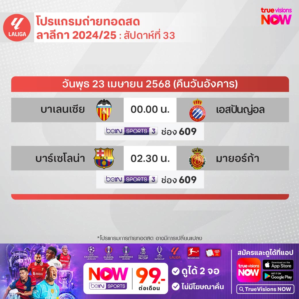 Barcelona vs Mallorca เวลา 02.30-04.30 ทางช่อง beIN 3 (609)