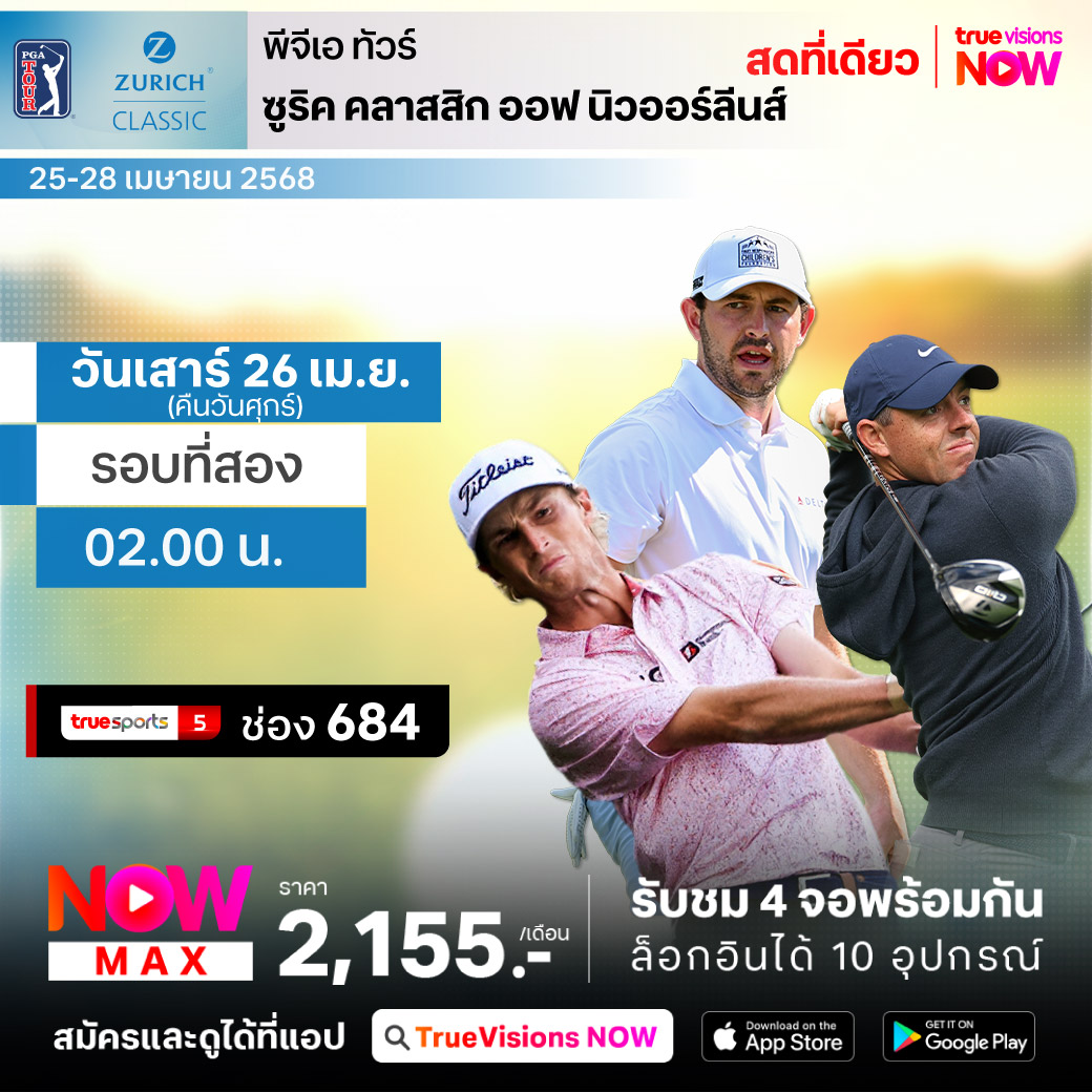 ซูริค คลาสสิก ออฟ นิว ออร์ลีนส์ ที่จะสร้างความตื่นเต้นเร้าใจให้กับแฟนๆ ด้วยเกมกอล์ฟที่มีลุ้นตลอดทั้ง 4 วัน ปีที่แล้ว บิ๊กเนมของวงการ รอรี่ แม็คอิลรอย และ เชน ลาวรี่ย์ จบด้วยตำแหน่งแชมป์ ติดตามกันว่าปีนี้ผลจะออกมาเป็นอย่างไร ชมสด เอ็กซ์คลูซีฟ ที่เดียวที่ ทรูวิชั่นส์