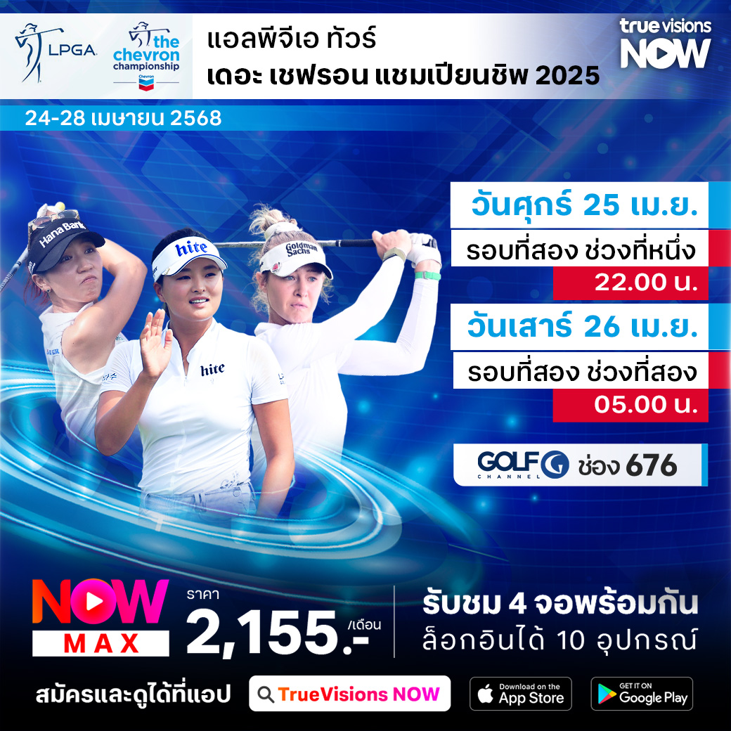 กอล์ฟเมเจอร์แรกของปี 2025 ทางฝั่งหญิง กับรายการที่แฟนๆ รอคอยอย่าง เดอะ เชฟรอน แชมเปี้ยนชิพ ที่สนาม เดอะ คลับ แอท คาร์ลตัน วู้ดส์ แจ็ค นิคคลอส ซิกเนเจอร์ คอร์ส ใน เดอะ วู้ดแลนด์ รัฐเท็กซัส ร่วมเชียร์โปรสาวไทยลุ้นเป็นแชมปร่วมกับโปรแถวหน้าของโลก ชิงเงินรางวัลรวมมหาศาล 7.9 ล้านเหรียญสหรัฐฯ ชมสด ครบทุกรอบ ที่ ทรูวิชั่นส์