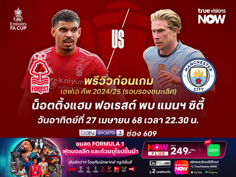 ศึกเอฟเอ คัพ อังกฤษ 2024-25 รอบรองชนะเลิศ น็อตติ้งแฮม ฟอเรสต์ จะพบกับ แมนฯ ซิตี้ ที่สนาม เวมบลีย์โดยเกมนี้ ฟอเรสต์ ฟอร์มสะดุดไปในช่วงหลัง หลังพลาดท่าแพ้ในเกมลีก 2 นัดติดต่อกัน แต่ยังดีที่เกมล่าสุดกลับมาเก็บชัยชนะได้อีกครั้งแล้ว ทำให้ในภาพรวมยังถือว่ามีความอันตรายอยู่ ขณะที่ แมนฯ ซิตี้ ฟอร์มช่วงหลังดีขึ้นอย่างมาก หลังไม่แพ้ใครมาแล้ว 7 เกมติดต่อกัน และยังชนะไปได้ถึง 5 เกม ซึ่งพวกเขาหวังเป็นอย่างยิ่งว่าจะผ่านเข้าชิงชนะเลิศ เอฟเอ คัพ ได้