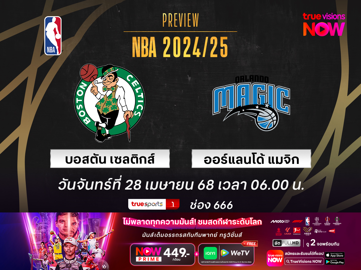 เวลา 06.00 น. วันที่ 28 เม.ย. นี้ บอสตัน เซลติกส์ @ ออร์แลนโด้ แมจิก ถ่ายทอดสดทางช่อง ทรูสปอร์ตส์1 (666)