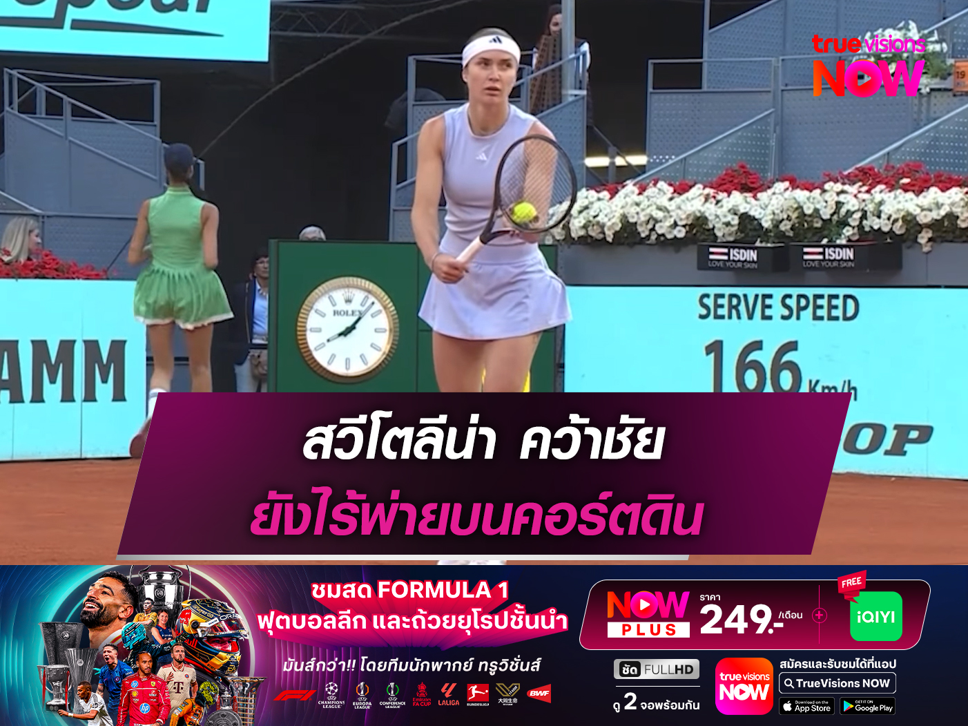 เอลีน่า สวีโตลีน่า ยังครองสถิติไม่แพ้บนคอร์ตดินฤดูกาล 2025 เดินหน้าเข้ารอบ 16 คน WTA1000 มาดริด โอเพ่น เมื่อช่วงเช้า 28 เม.ย. ที่ผ่านมาตามเวลาประเทศไทย เอาชนะ เอเลน่า รีบาคิน่า 6-3, 6-4